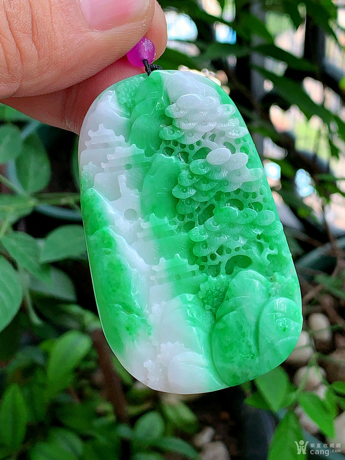 缅甸天然翡翠A货冰润飘花精雕山水牌