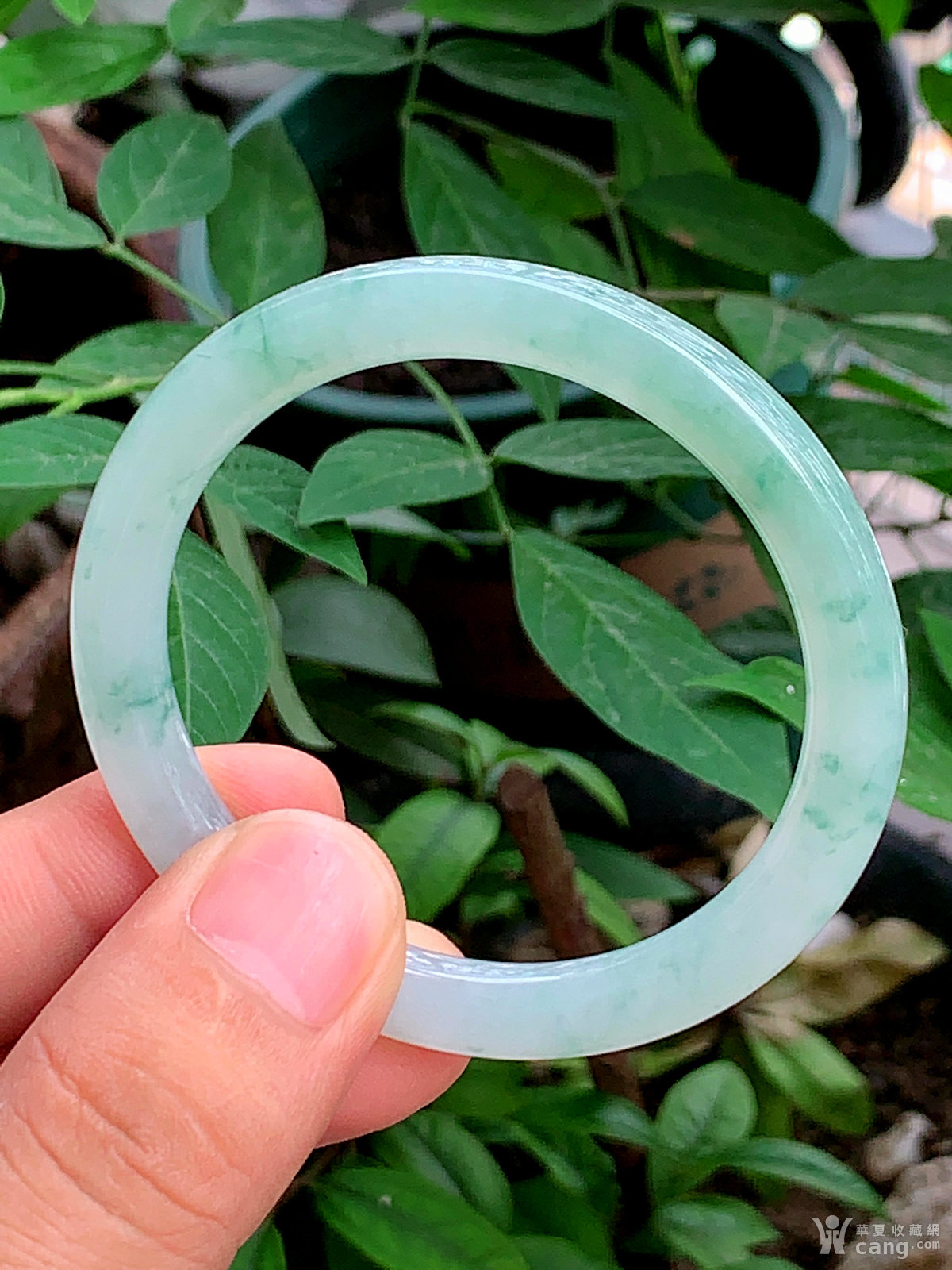 缅甸天然翡翠A货冰透水润飘花圆条手镯53.6圈口