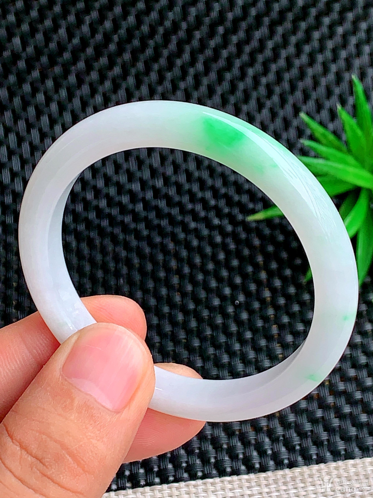缅甸天然翡翠A货冰透水润飘花宽边手镯54.6圈口