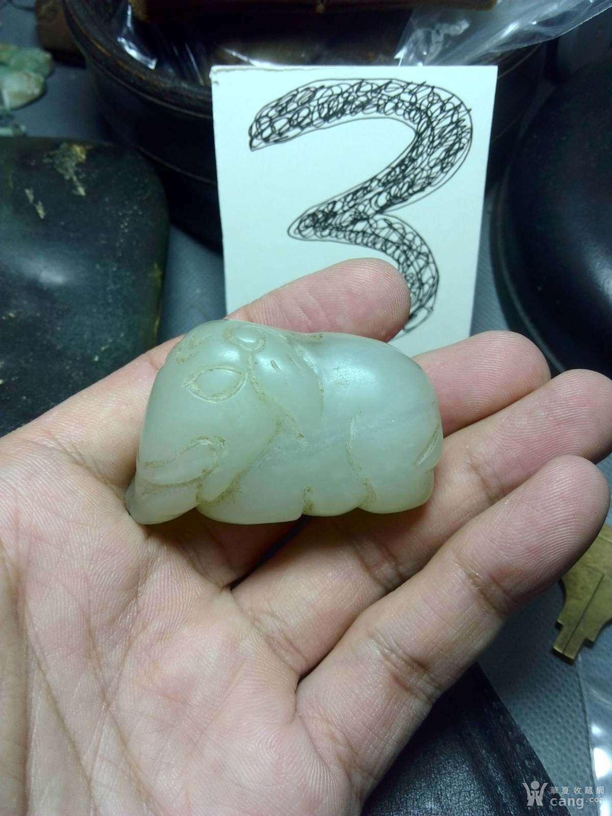 青花瓷器盖子,有小磕,有冲线如图所示