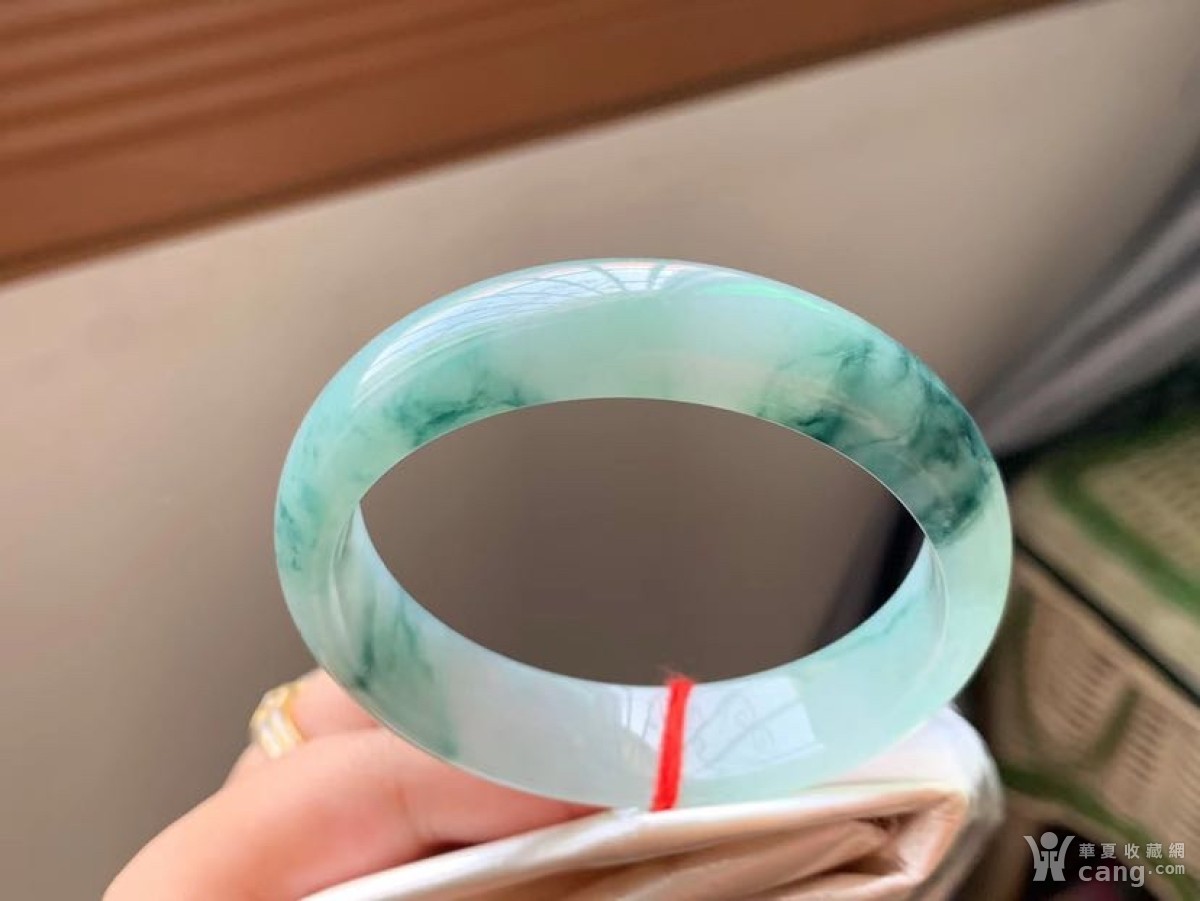 冰透起胶飘蓝花平安镯 完美 56-14-6mm