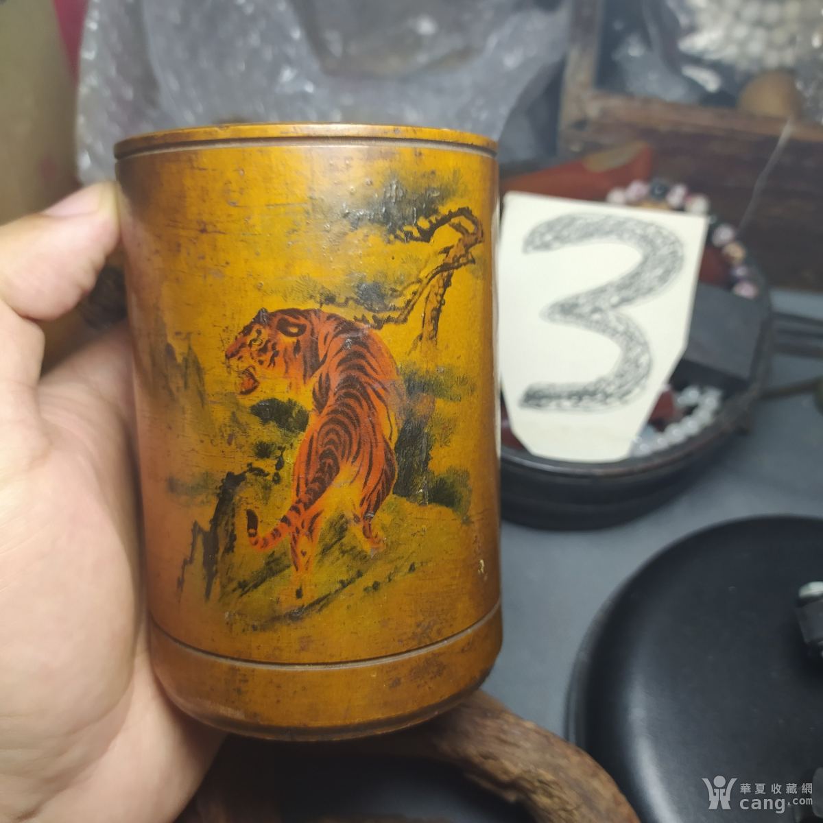 青花瓷器盖子,有小磕,有冲线如图所示