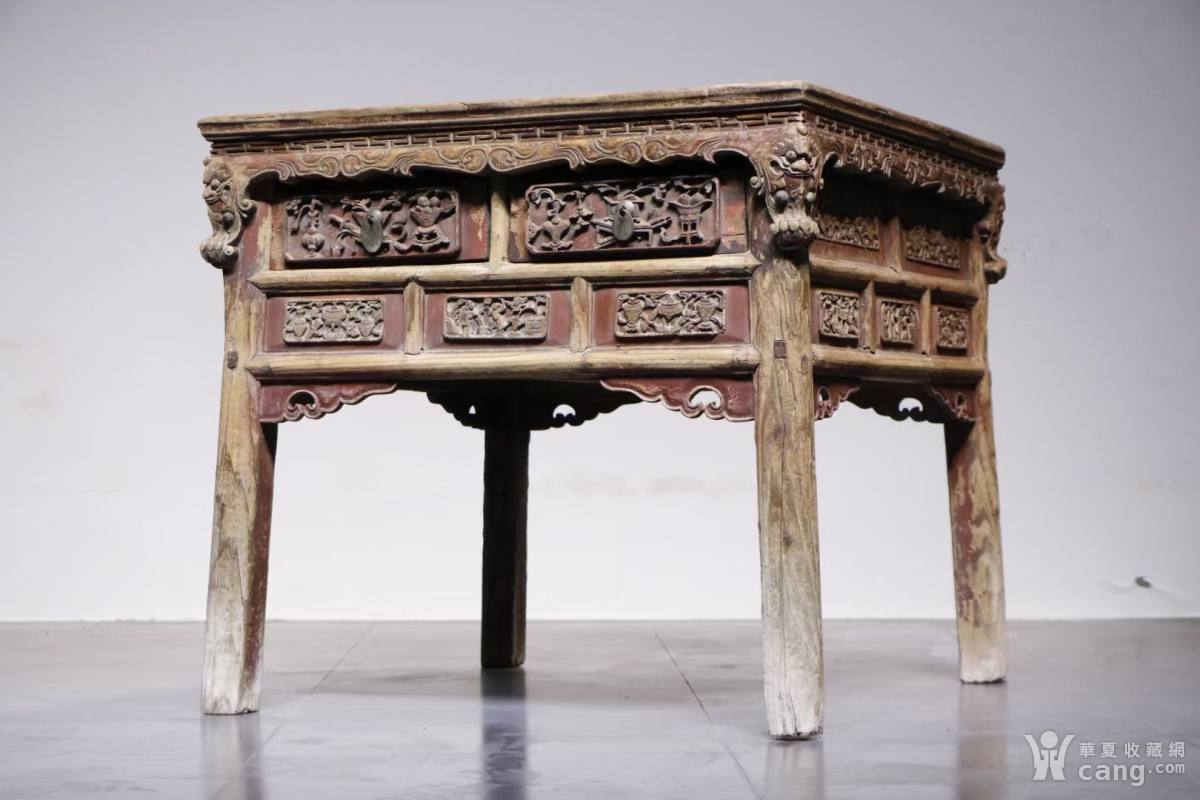 明代朱红漆瘿木面【供桌】;整器古朴典雅,独装芯瘿木面板,瘿如