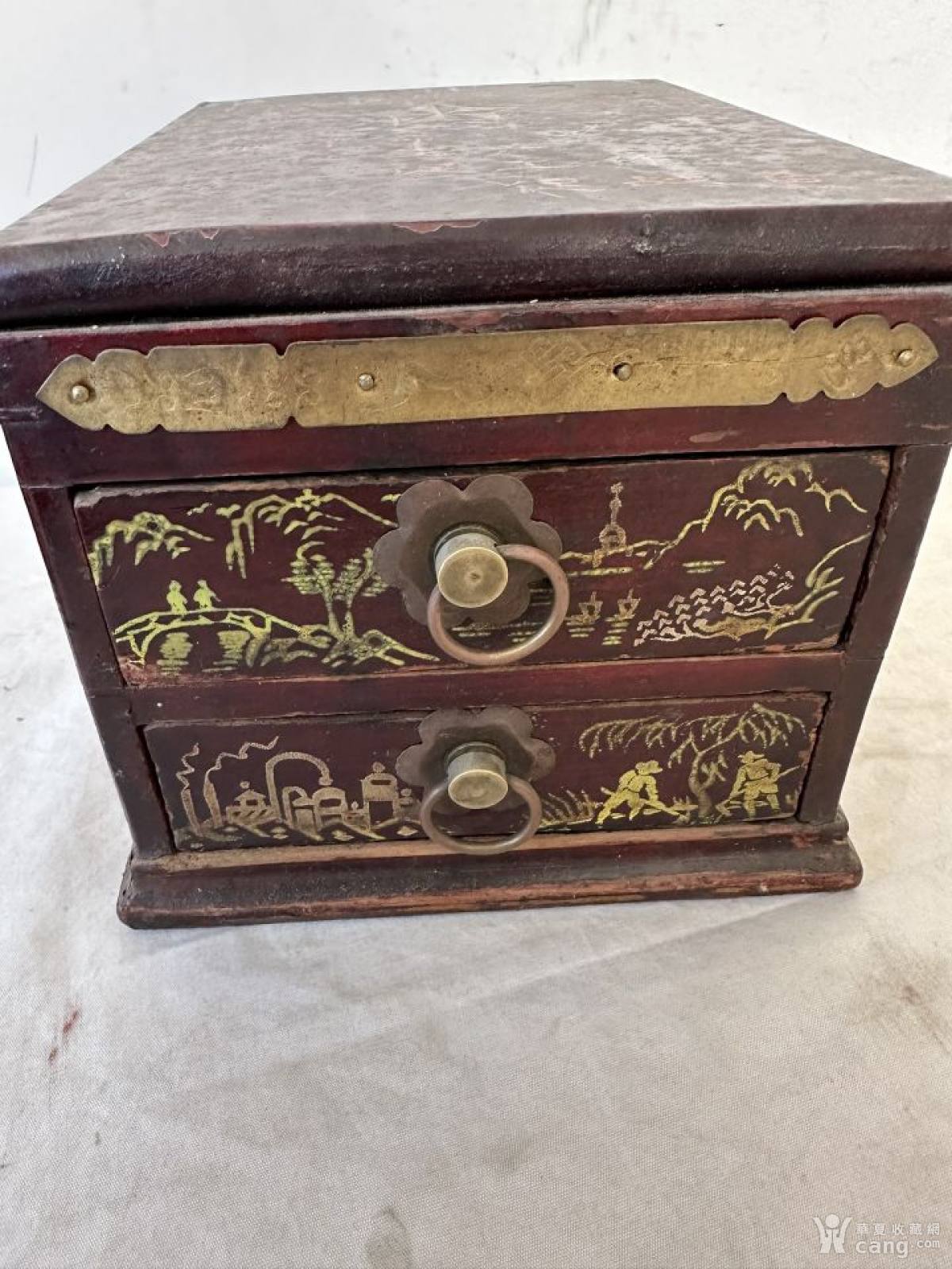 文革时期,高档首饰盒,时代色彩鲜明,抽屉镶有铜拉手 铜片手绘