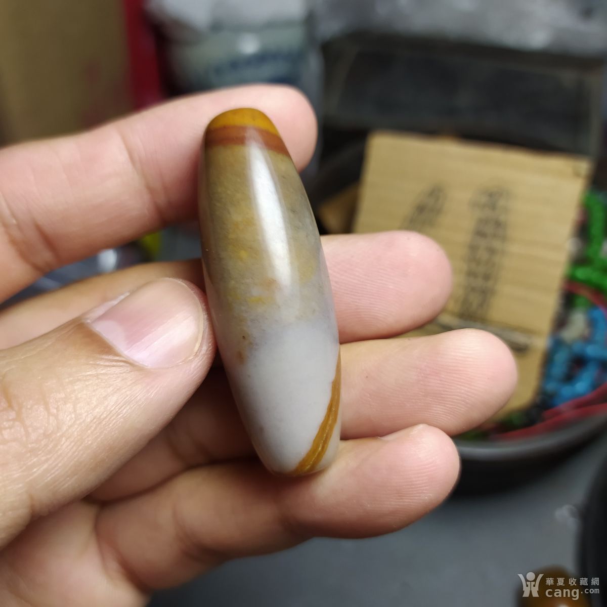 青花瓷器盖子,有小磕,有冲线如图所示