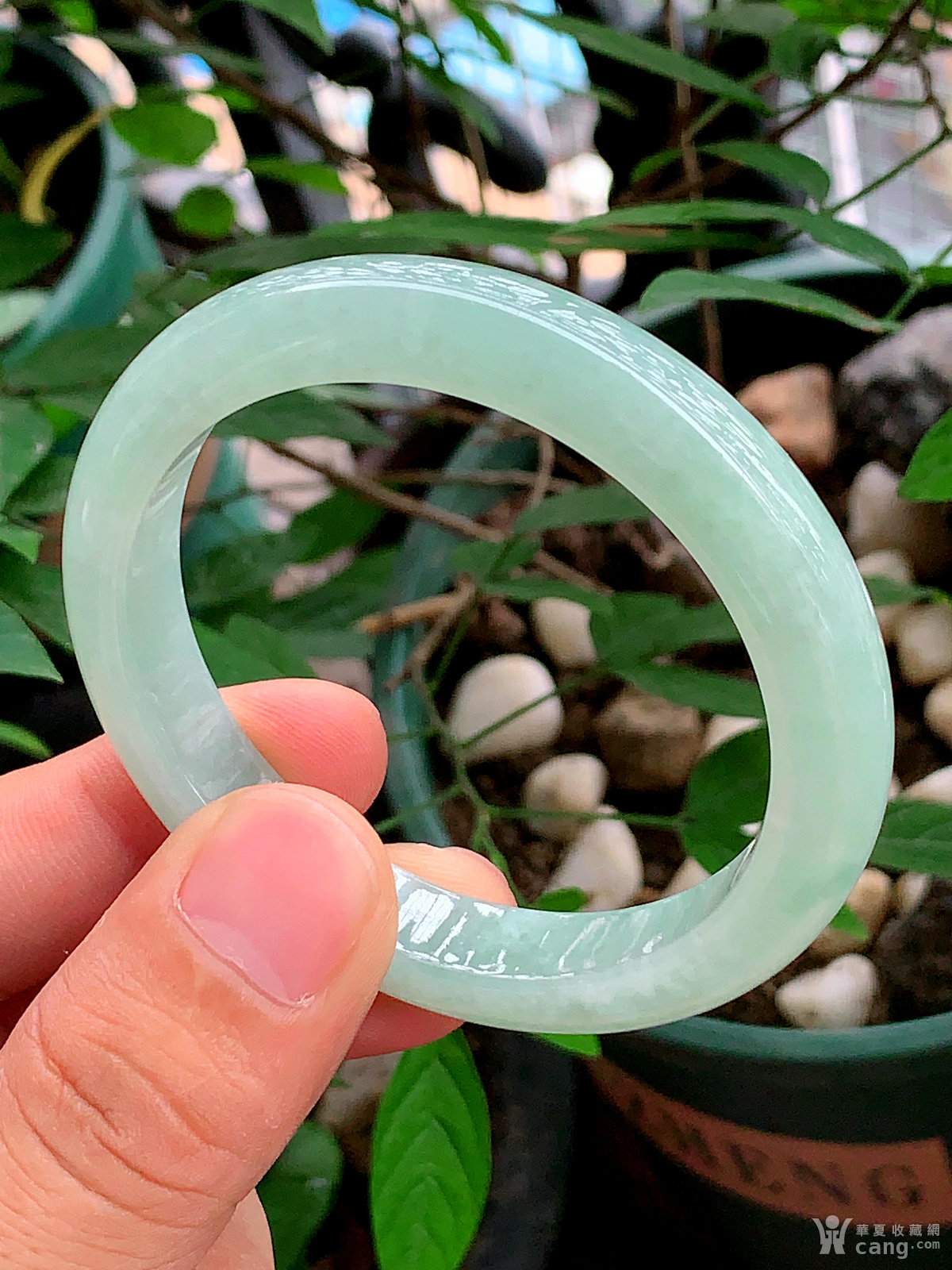 缅甸天然翡翠A货冰透水润满绿宽边手镯55.8圈口