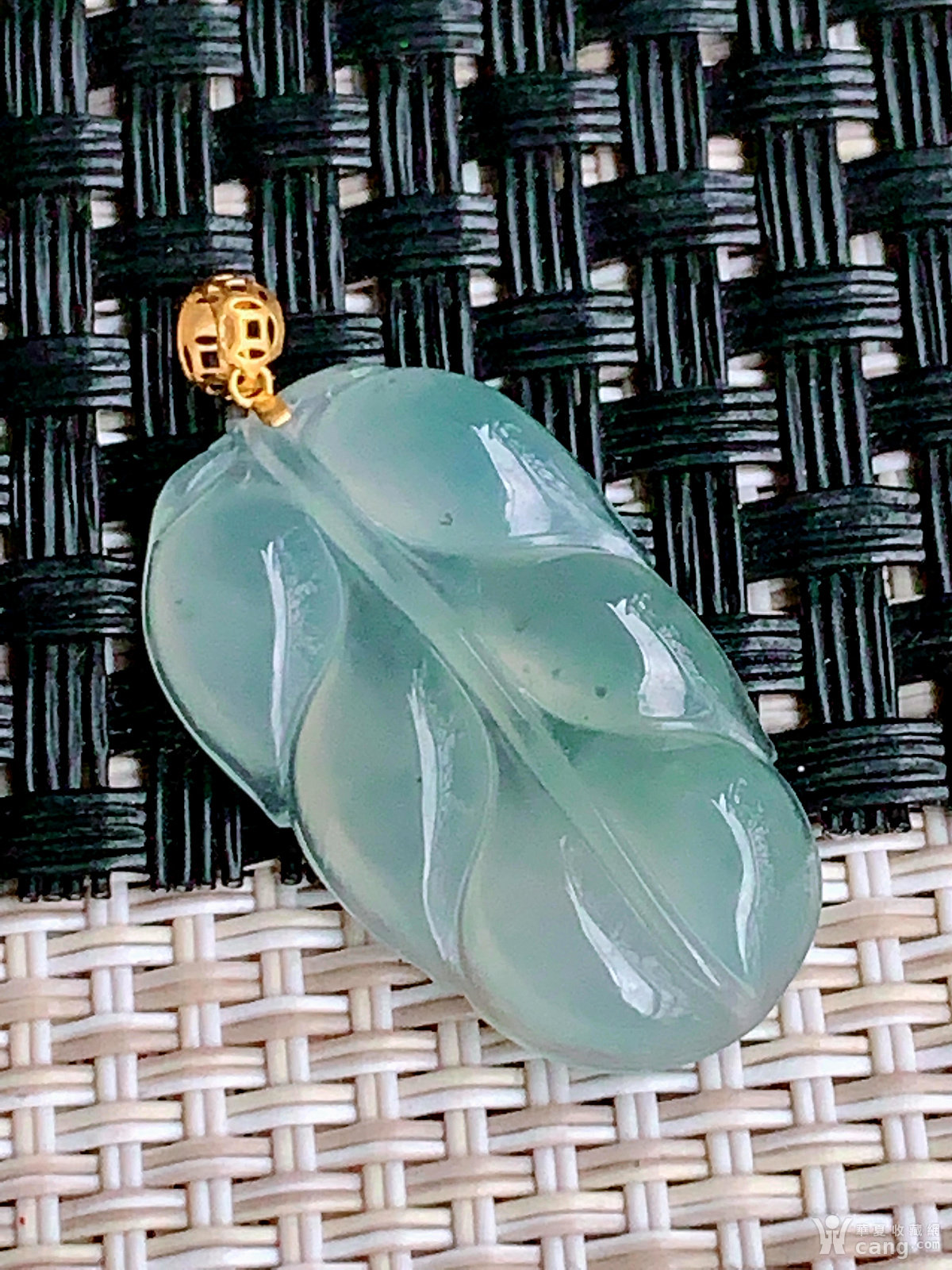 缅甸天然翡翠A货18k金扣冰透水润金枝玉叶吊坠