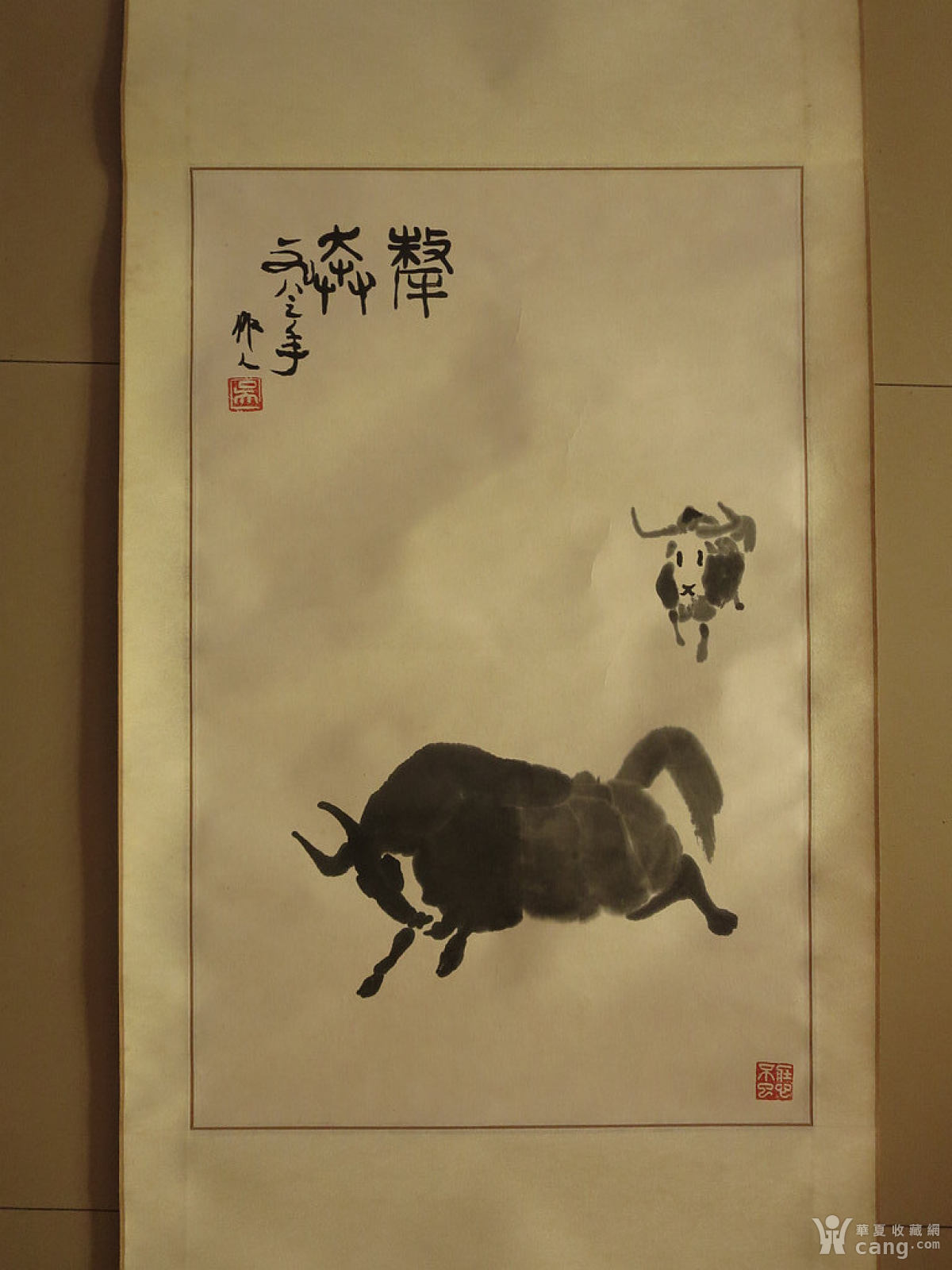 传统水墨走兽画奔牛奋进
