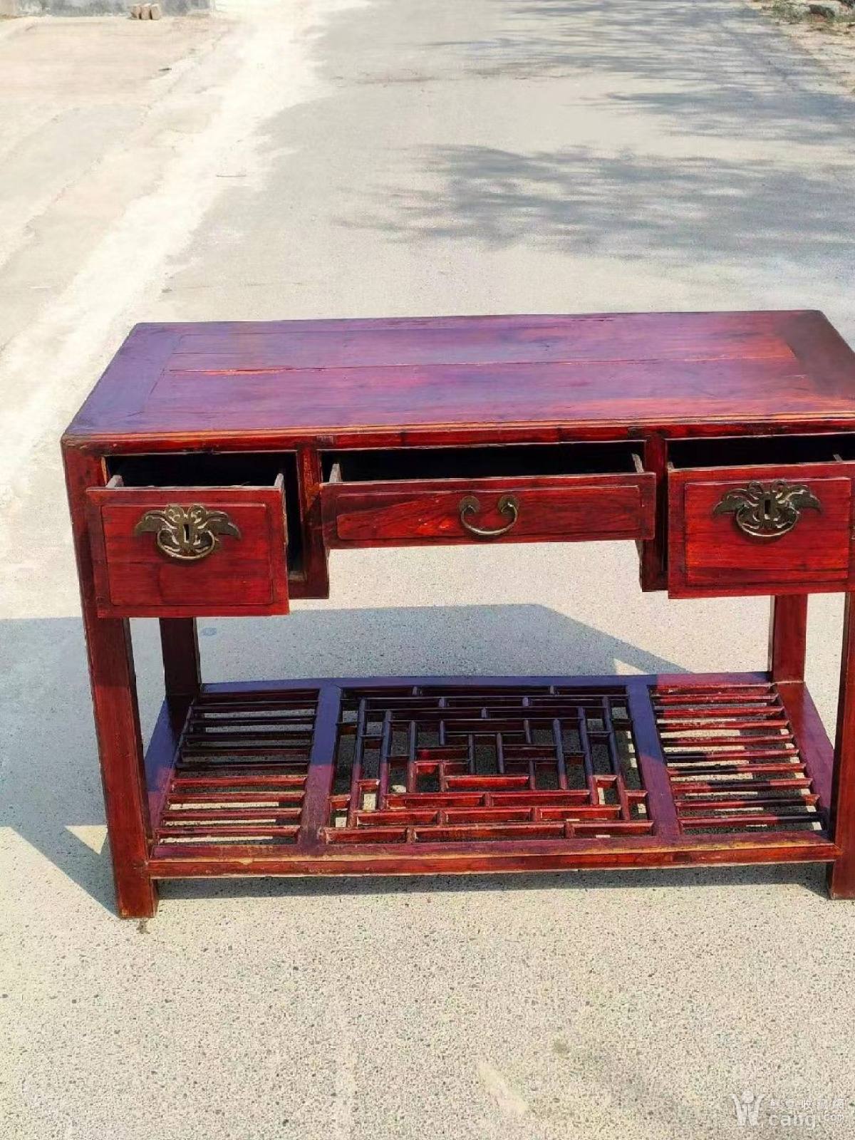 淸末民初,血榉木苏作三抽书桌,桌双马腿腿,双拼桌面木无裂无修