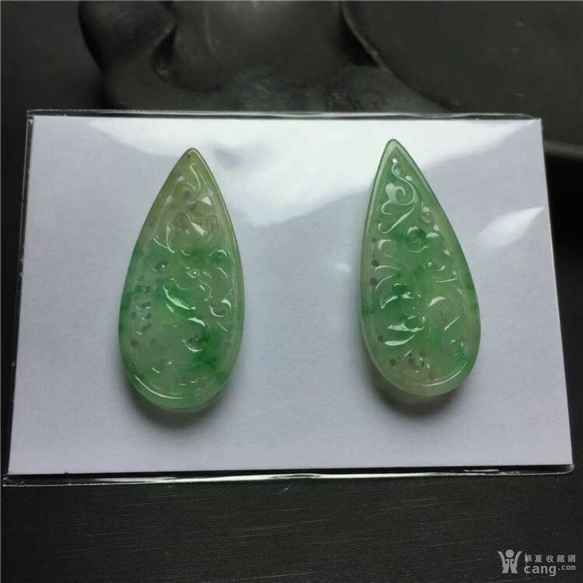 D243创汇期冰种飘阳绿翡翠缠枝纹水滴形花片一对