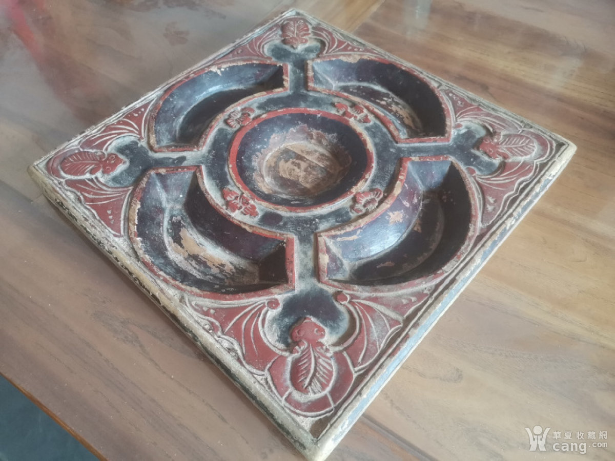 清康熙香木雕蝙蝠捧寿果子盘一件