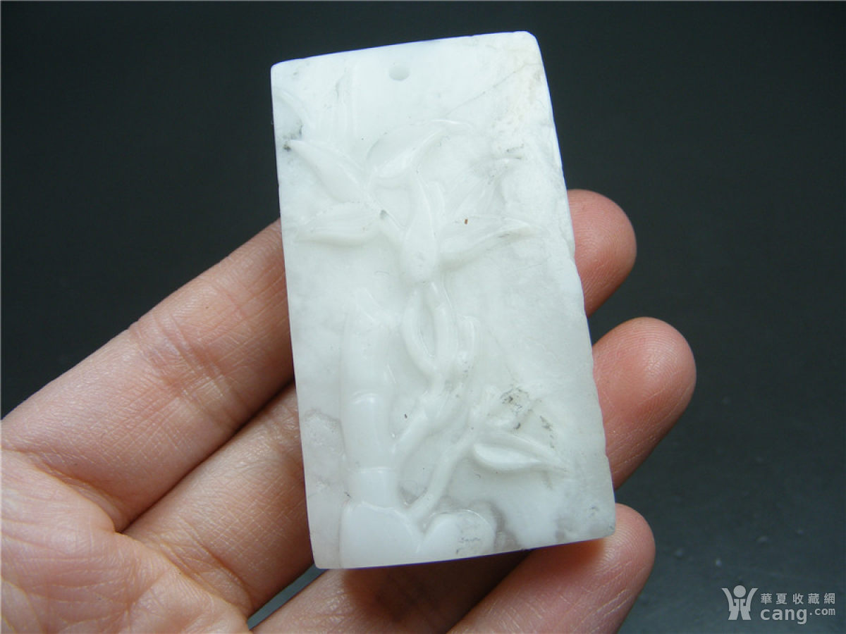 0329 几十年的地方白玉单面工凸起厚实浮雕竹叶竹节大方牌