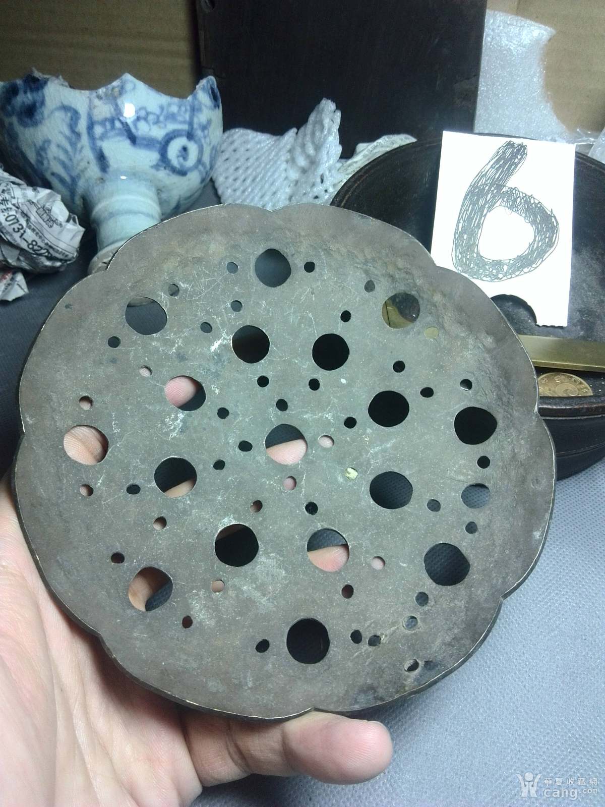 青花瓷器盖子,有小磕,有冲线如图所示