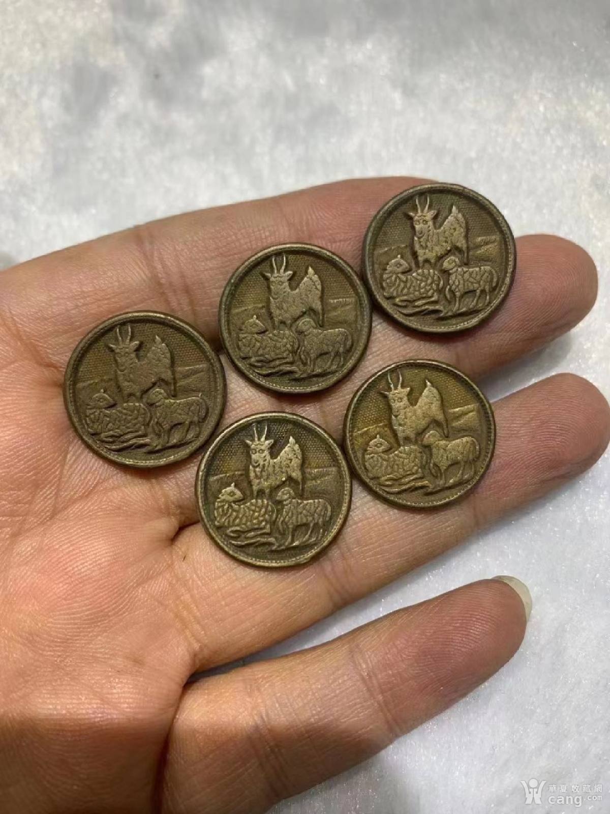 清末三羊开泰铜扣子一套