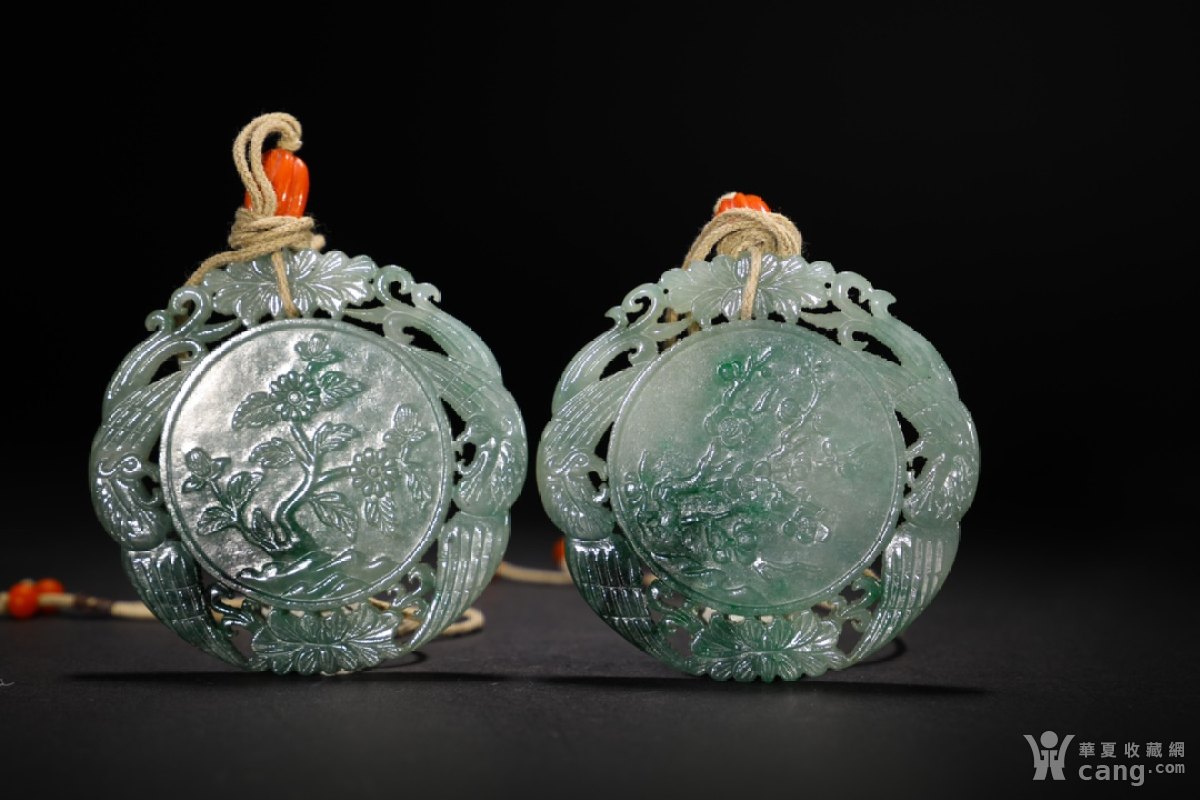 翡翠梅兰竹菊牌一对