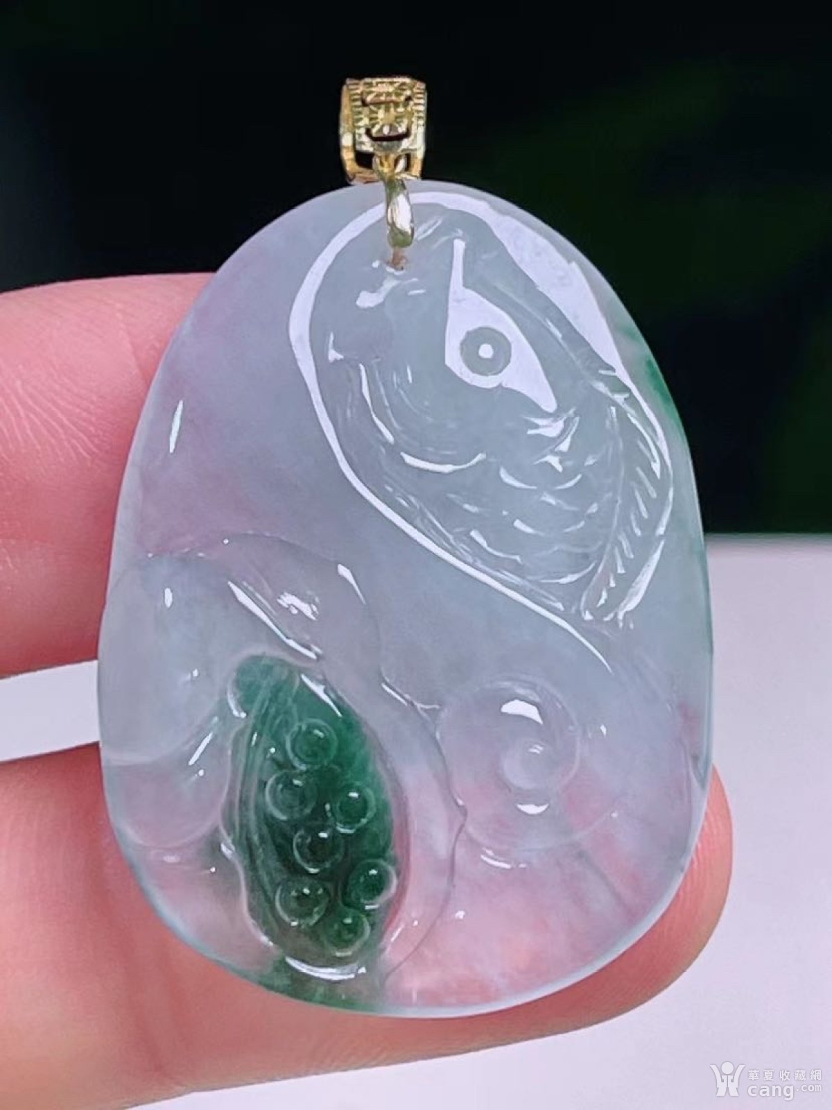 天然A货翡翠,年年有鱼吊坠,18K金镶嵌,尺寸33/24/6
