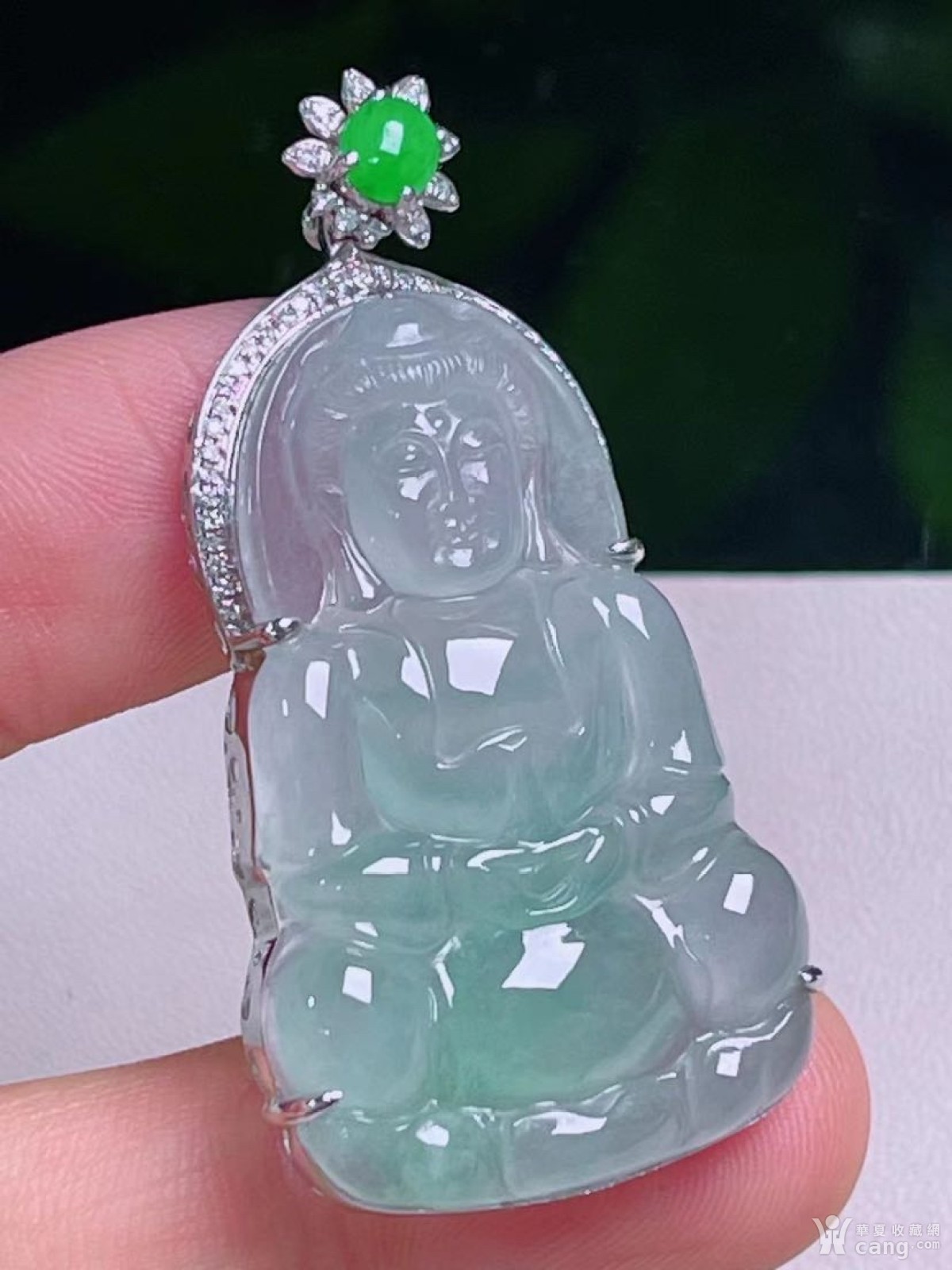 天然A货翡翠观音菩萨吊坠,18K金镶嵌尺寸46/24/7.1