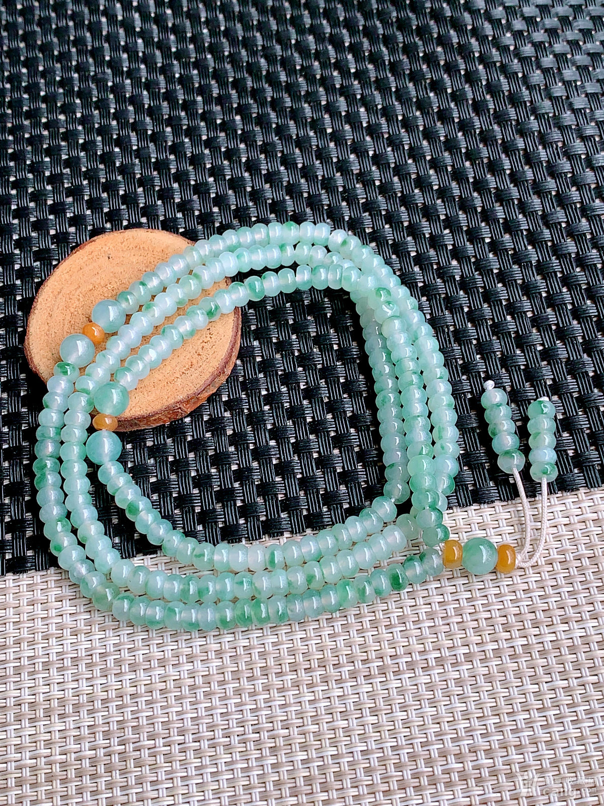 缅甸天然翡翠A货冰透水润飘花算盘珠项链