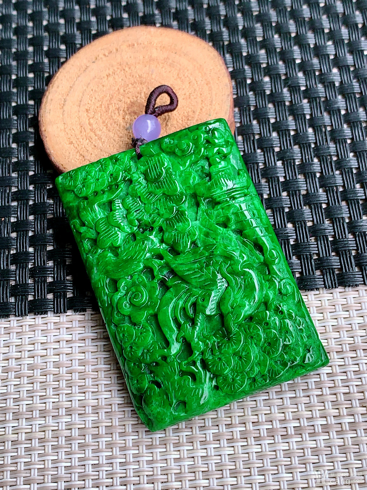 缅甸天然翡翠A货冰润满绿喜上眉梢吊坠