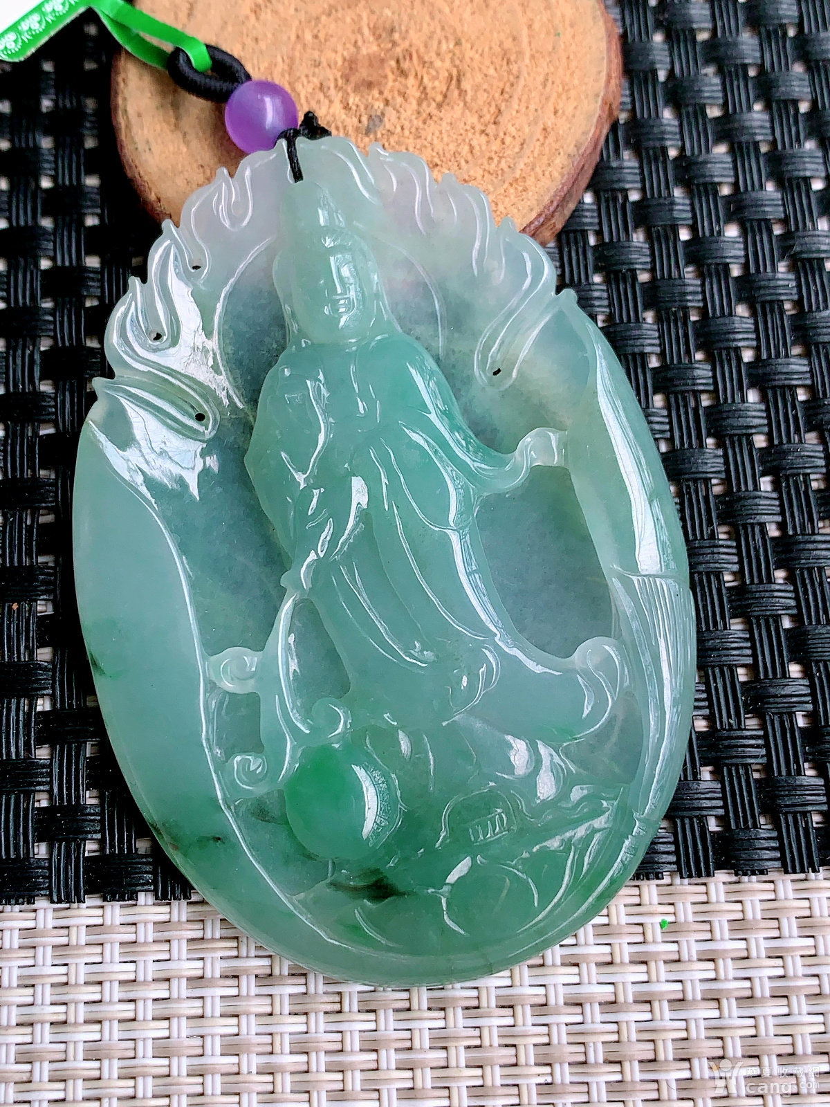 缅甸天然翡翠A货冰透水润飘花观音大士吊坠