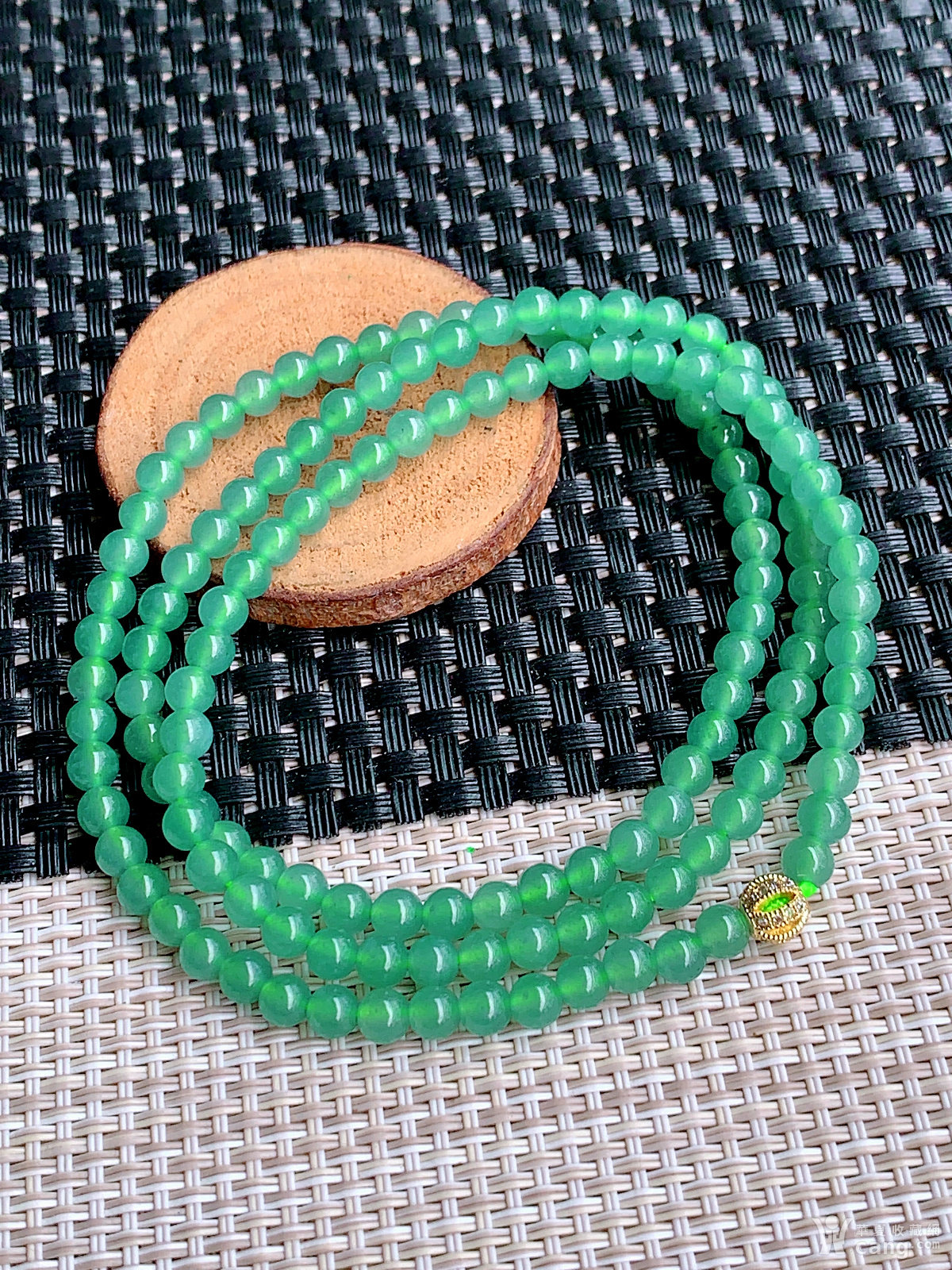 缅甸天然翡翠A货冰透水润满绿圆珠项链