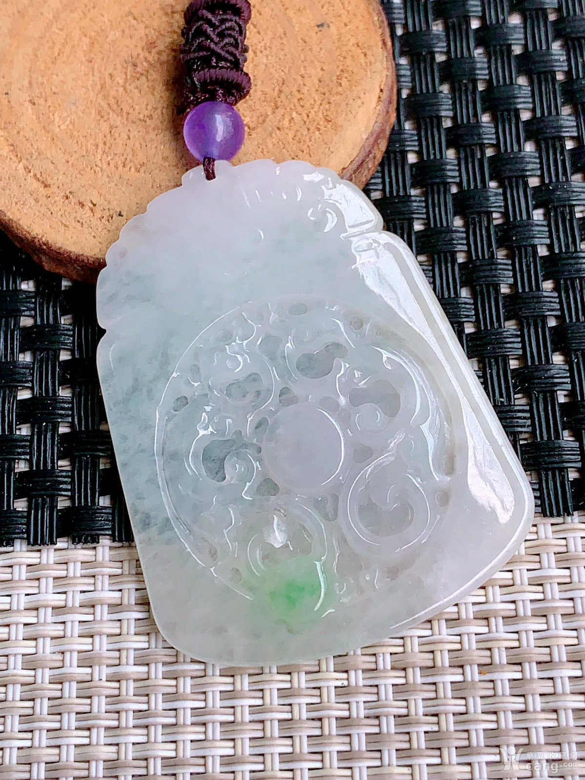 缅甸天然翡翠A货冰透水润飘花复古吊坠