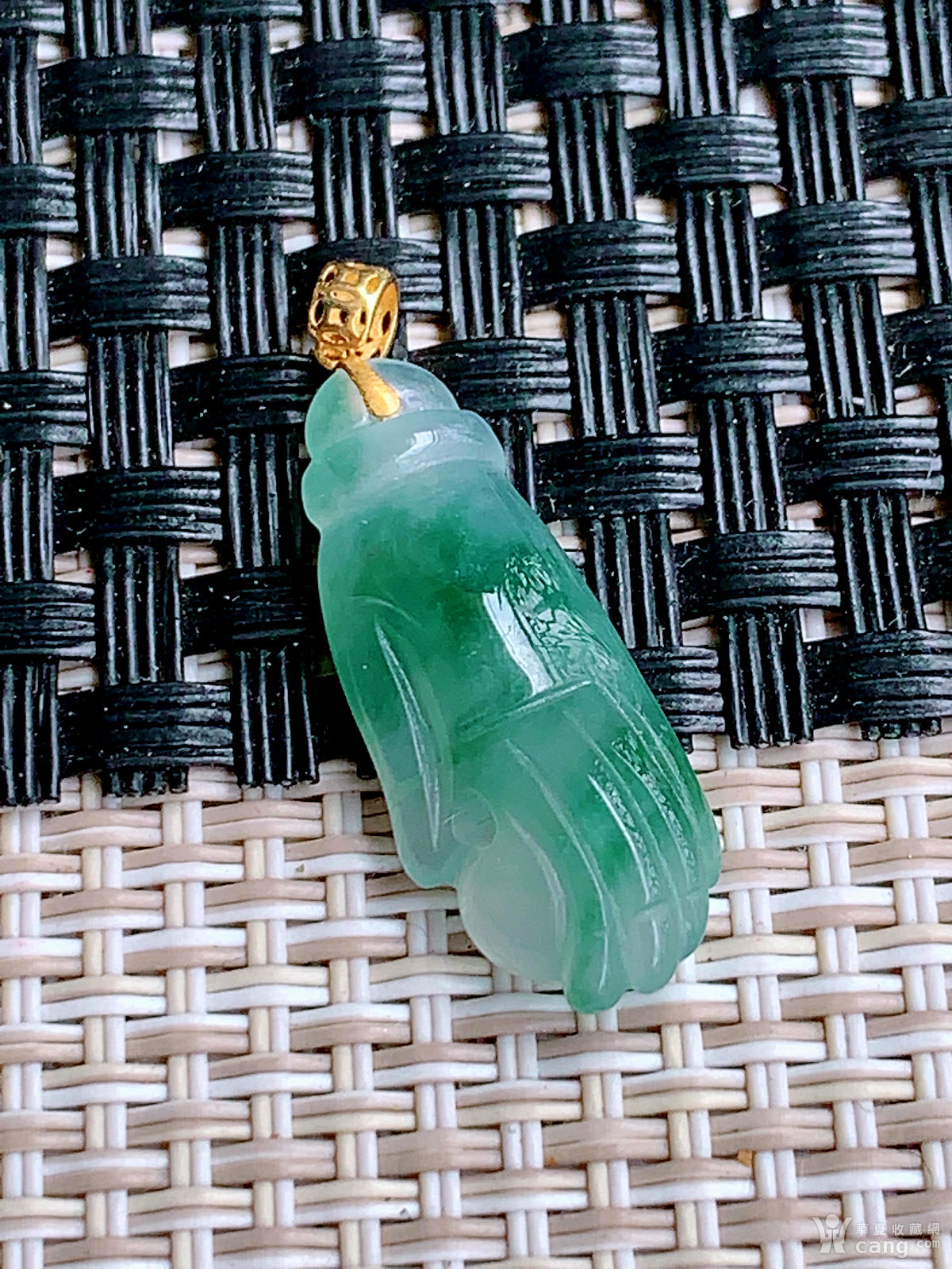 缅甸天然翡翠A货18k金扣冰透水润掌上明珠吊坠