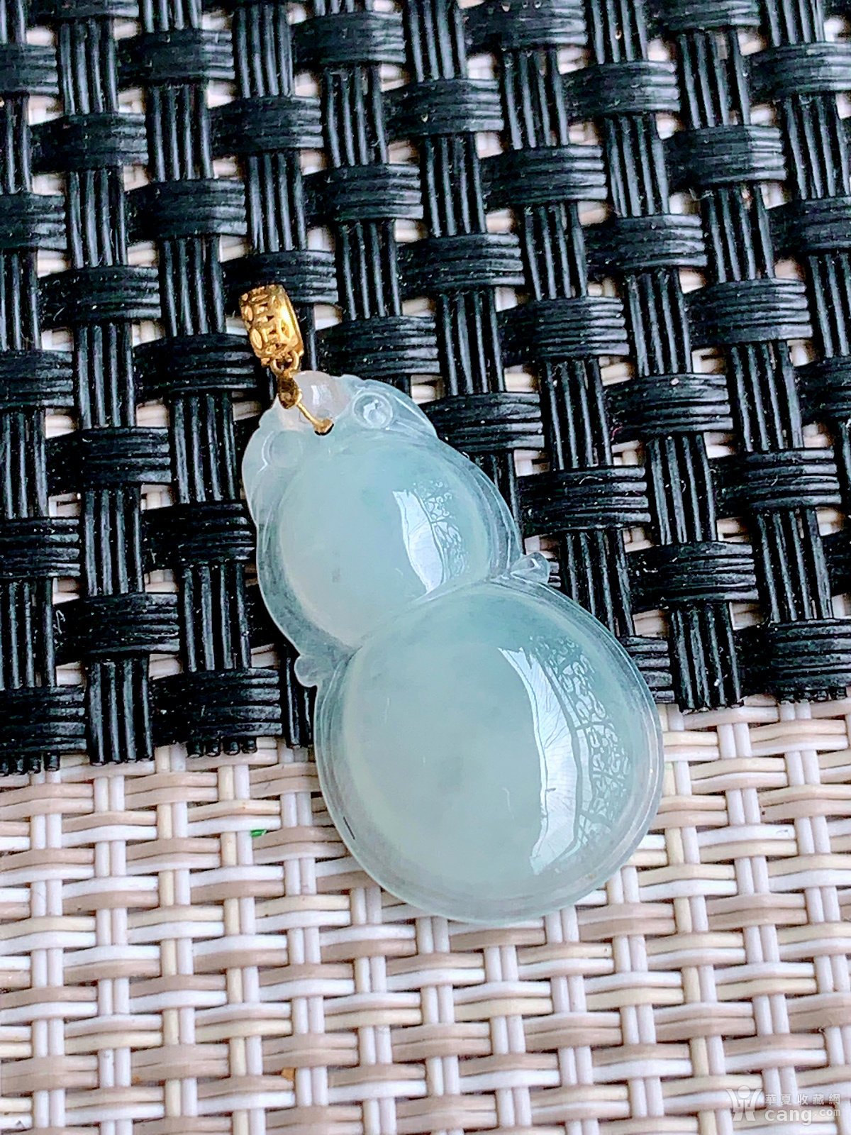 缅甸天然翡翠A货18k金扣冰透水润葫芦吊坠