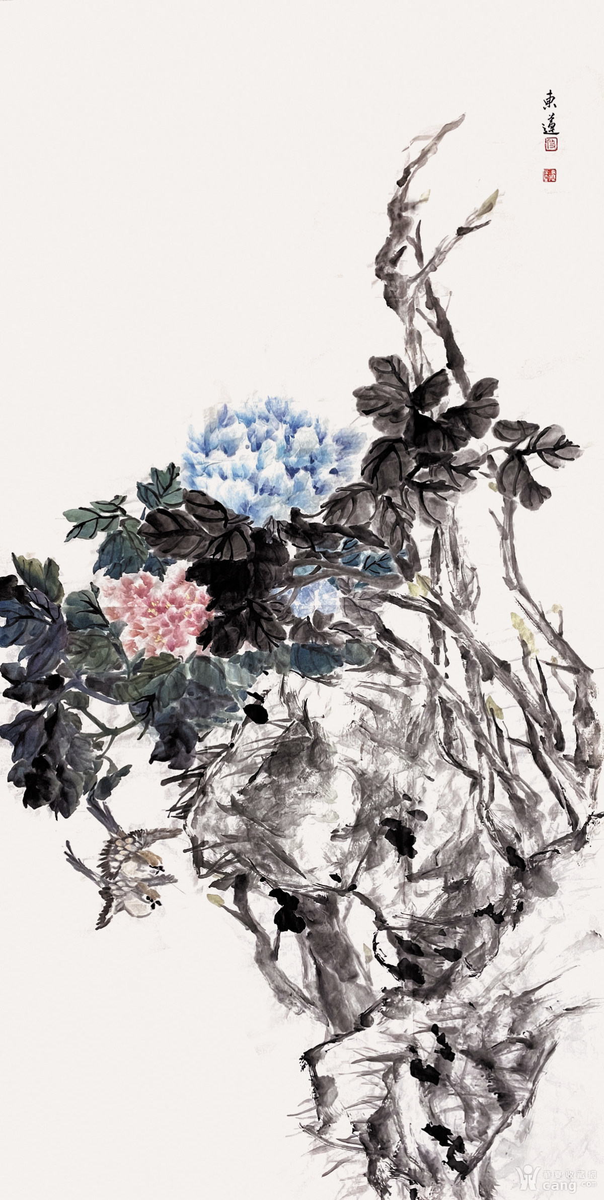 【中国美协会员四尺中堂】【保真】段东莲水墨花鸟5牡丹富贵花开