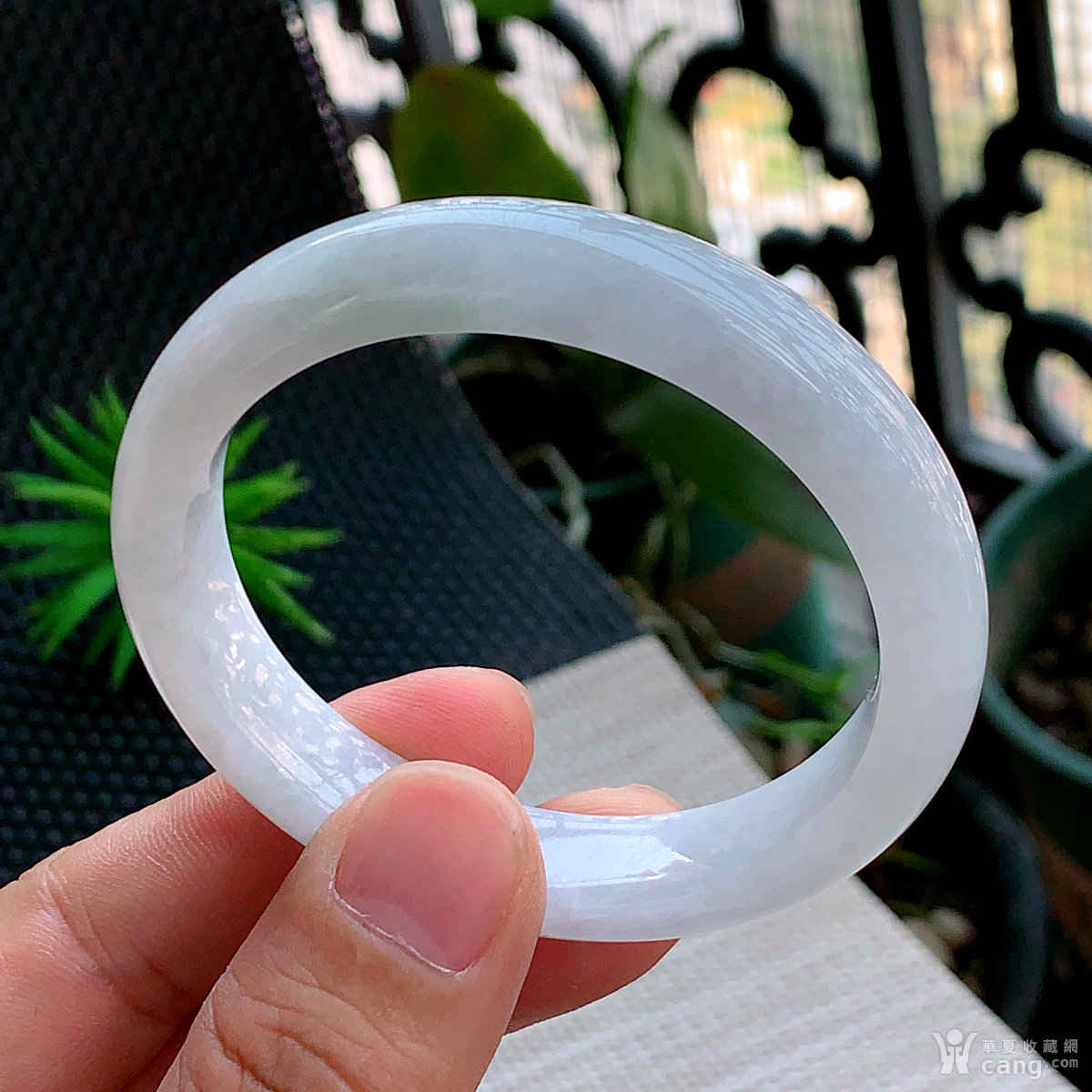 缅甸天然翡翠A货冰透水润宽边手镯58.6圈口