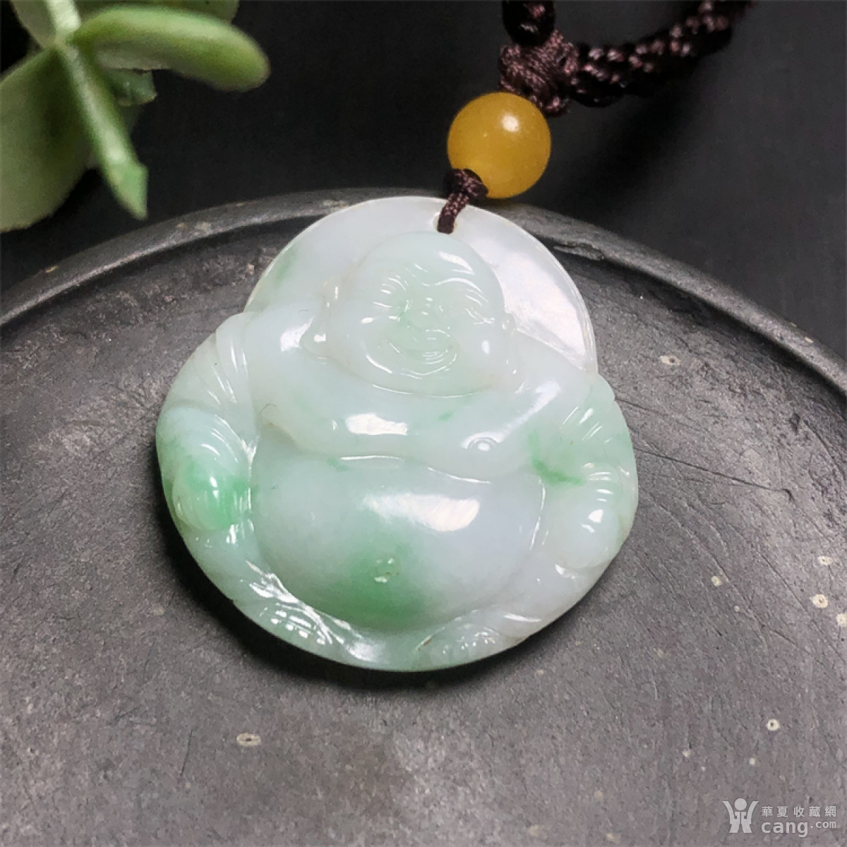 S641香港回流几十年老坑细糯种白底青飘阳绿翡翠弥勒佛吊坠