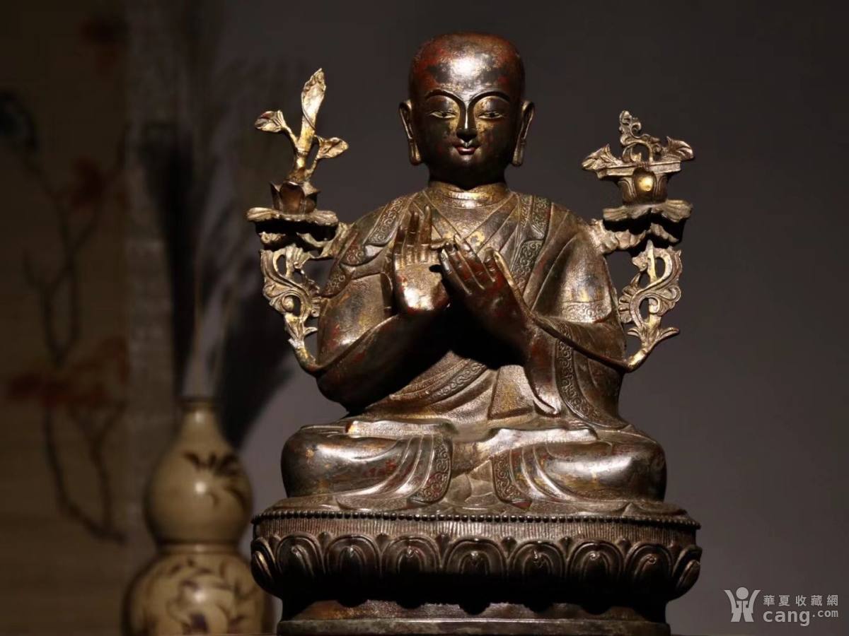 宗喀巴造像 铜鎏金 尺寸 高38长29宽16 开脸饱满
