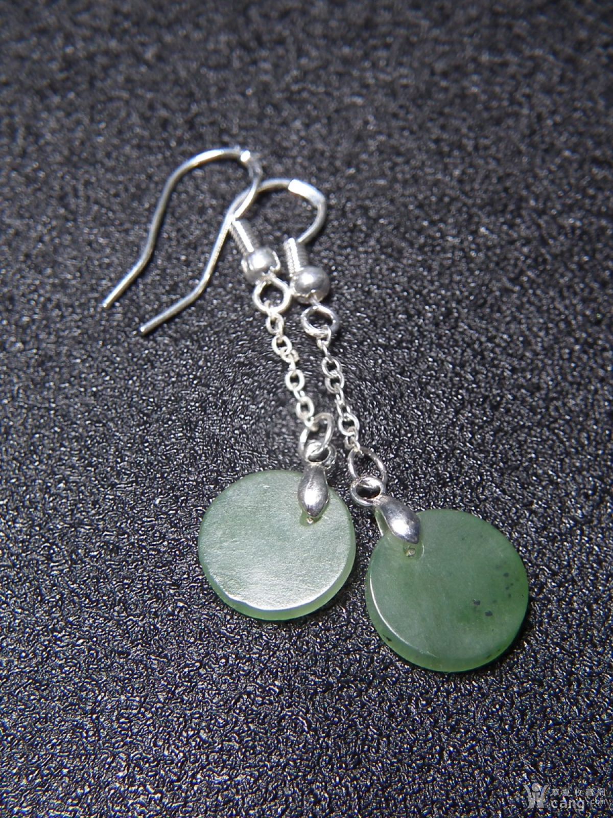 Q19 正宗新工合金镶和田碧玉圆形耳环一对