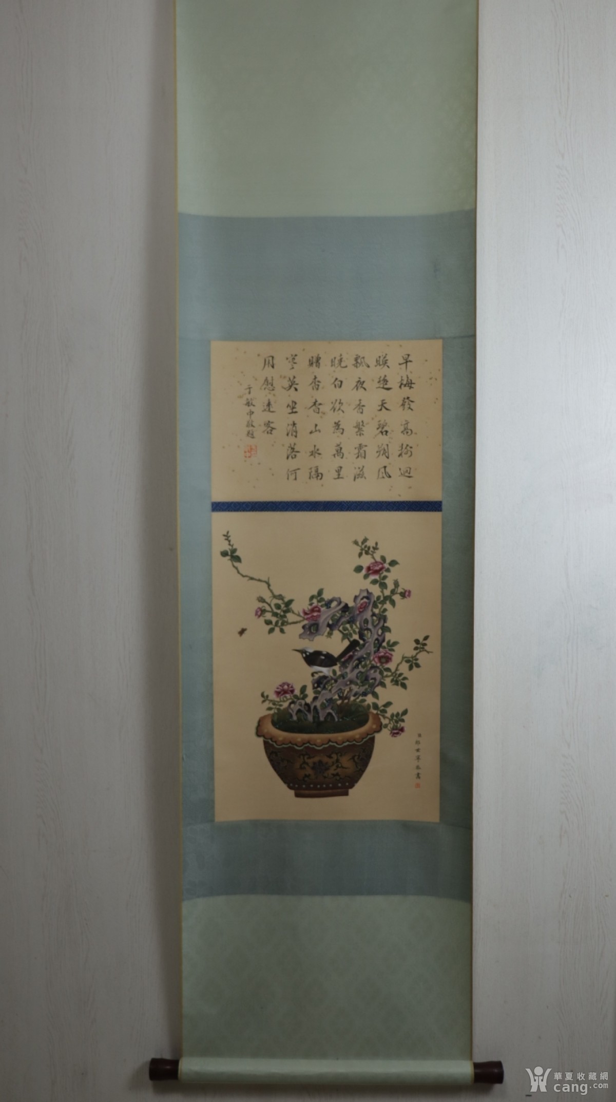 郎世宁 于敏中 诗堂 花鸟立轴