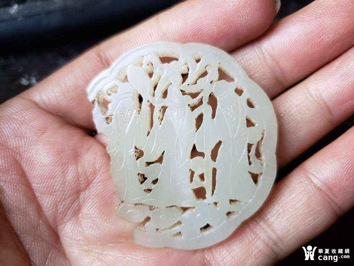 和田白玉镂空雕人物挂牌(双面工),明清