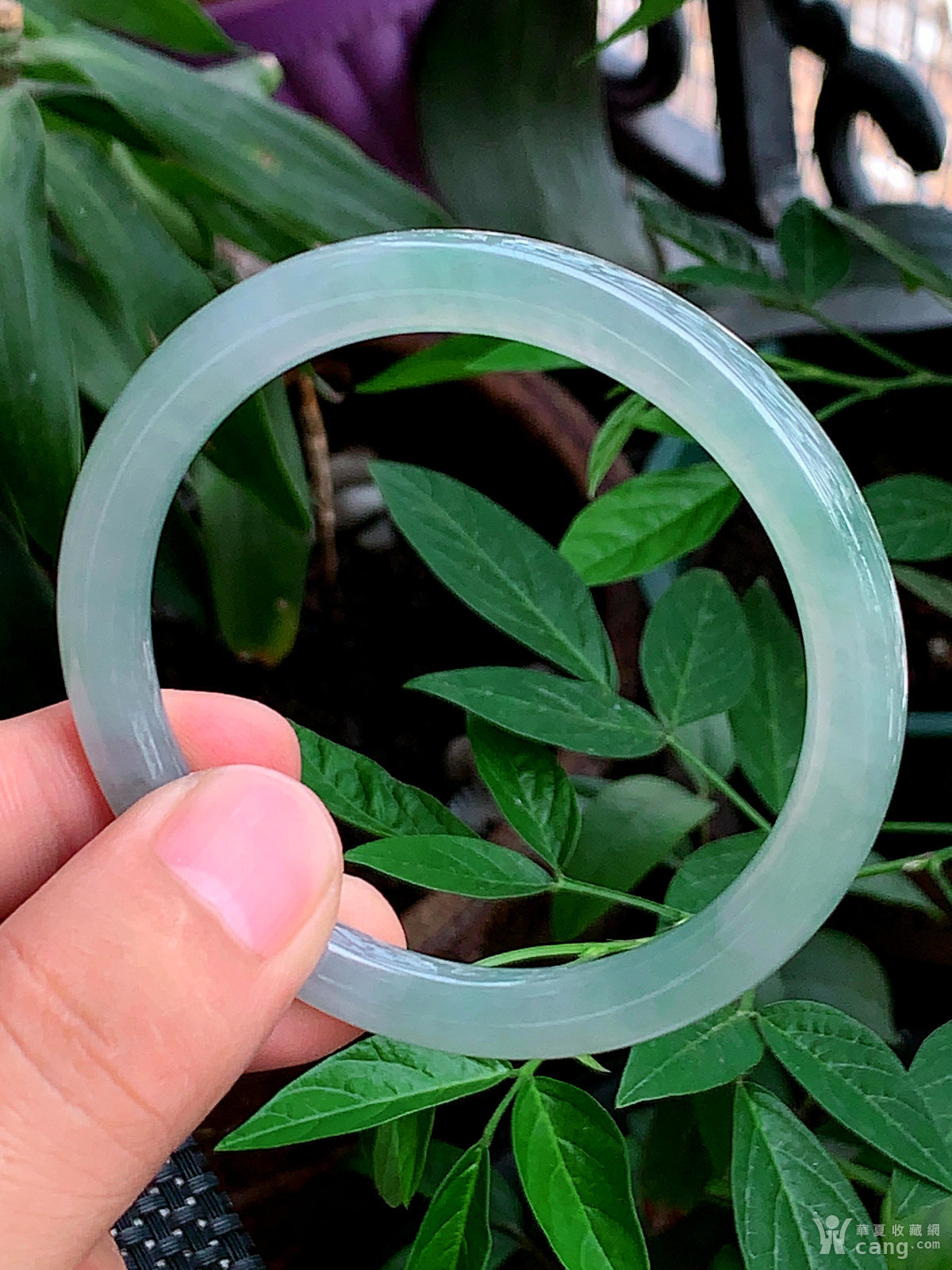 缅甸天然翡翠A货冰透水润带绿大圈口圆条手镯60.8圈口