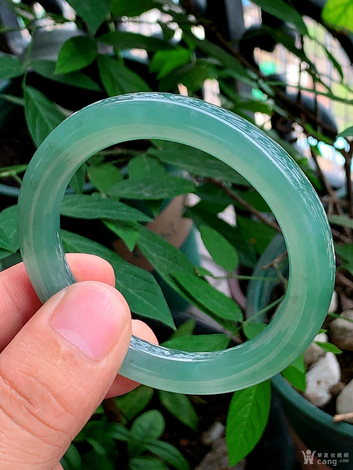 缅甸天然翡翠A货冰透水润满绿圆条手镯54圈口