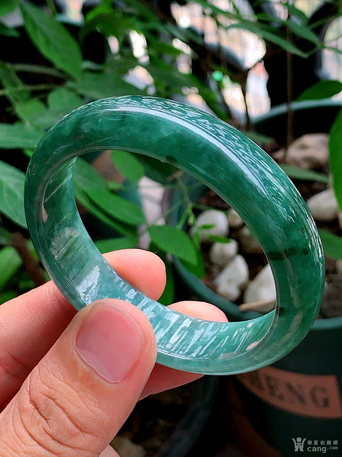 缅甸天然翡翠A货冰润满绿宽边手镯55.5圈口