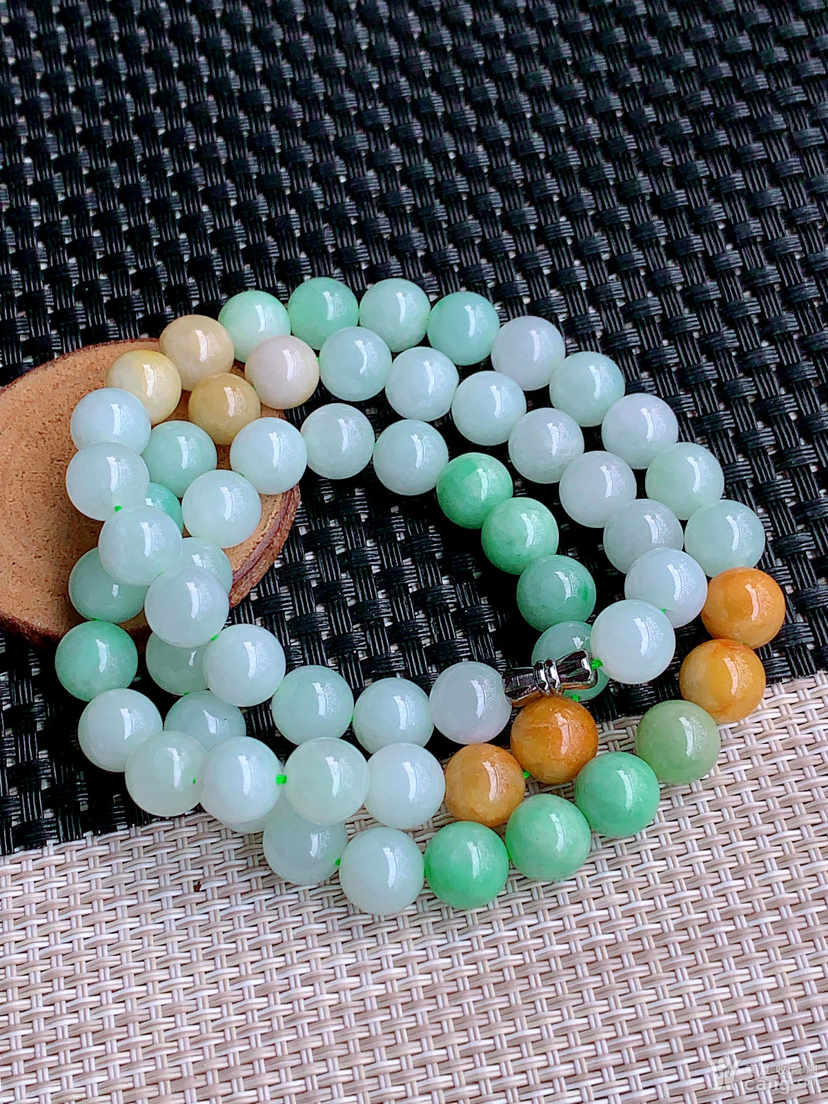 缅甸天然翡翠A货冰润双彩圆珠项链