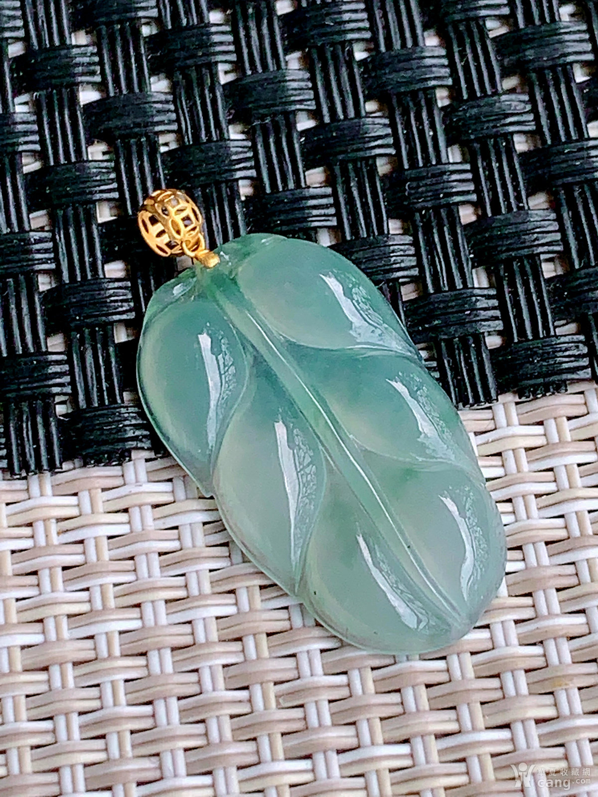 缅甸天然翡翠A货18k金扣冰透水润金枝玉叶吊坠