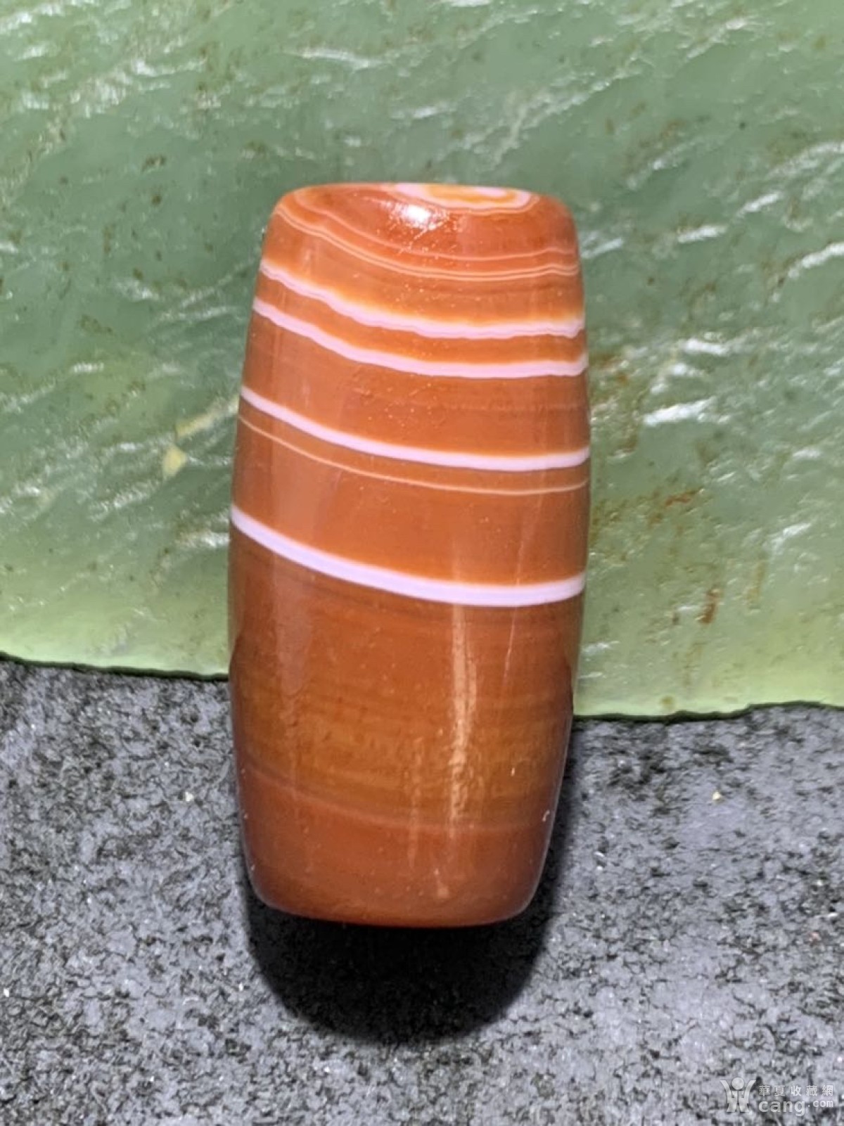精美高玉化红白双色千层纹缠丝玛瑙桶珠一颗,