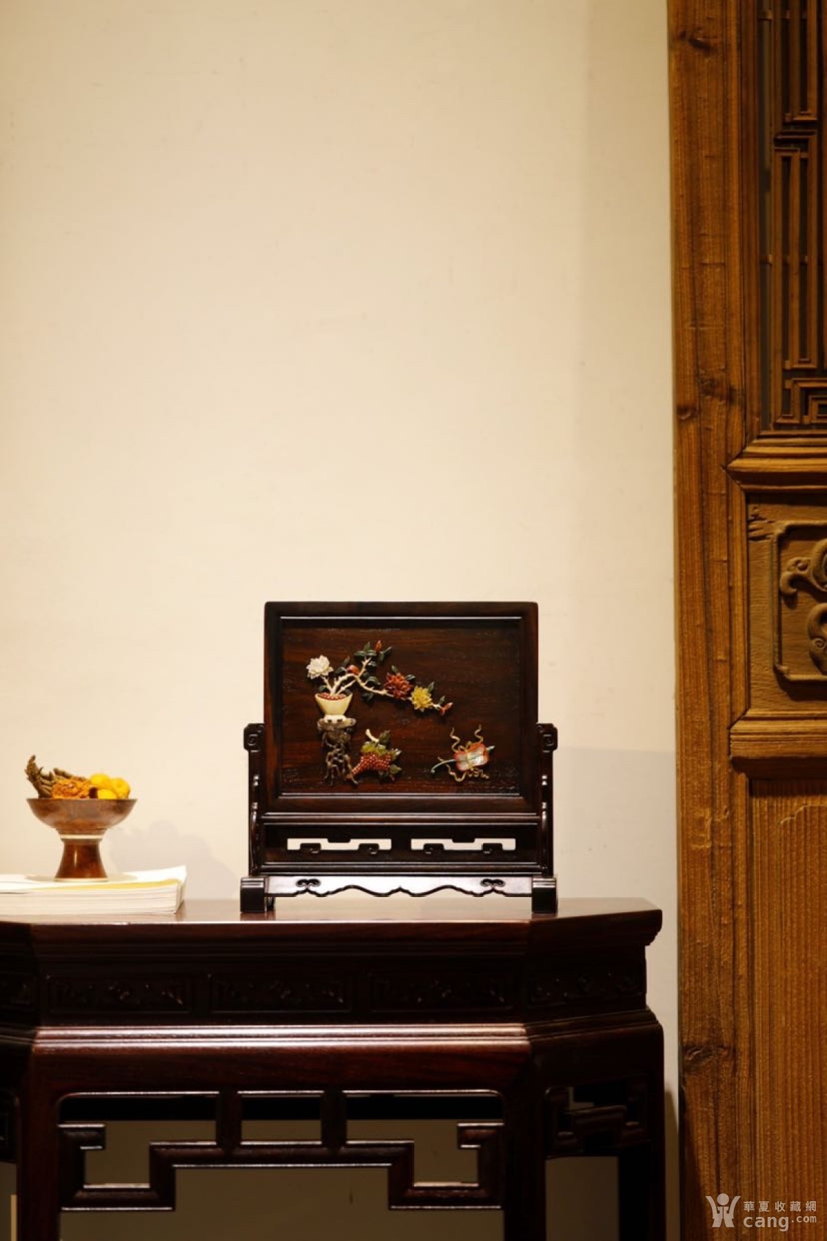 酸枝百宝嵌【清供图】插屏 酸枝老料攒框,经典器型 百宝嵌作