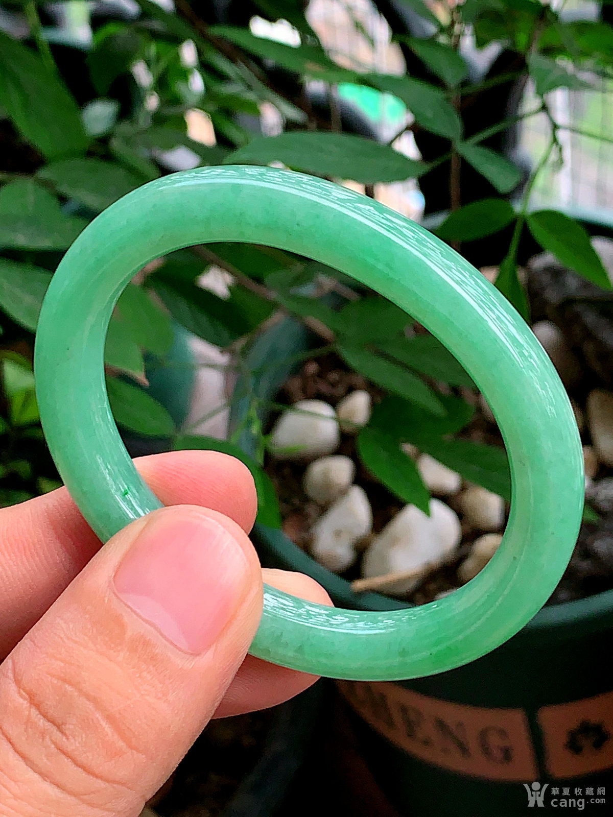 缅甸天然翡翠A货冰透水润满绿圆条贵妃手镯54.8圈口