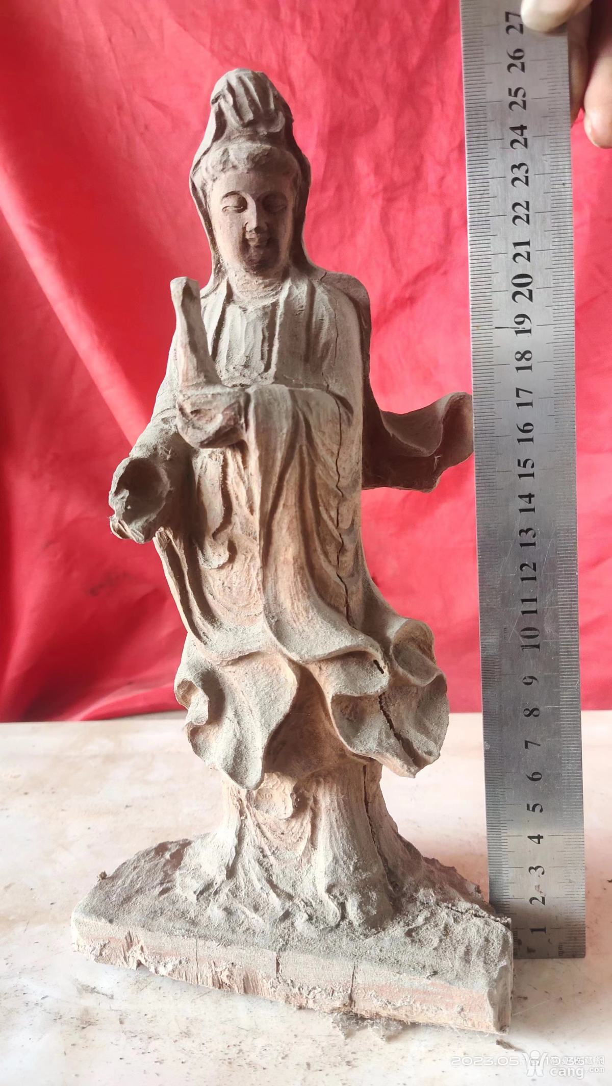 高27长13宽8厘米,老红木雕观音,有裂,纯手工雕刻,包邮
