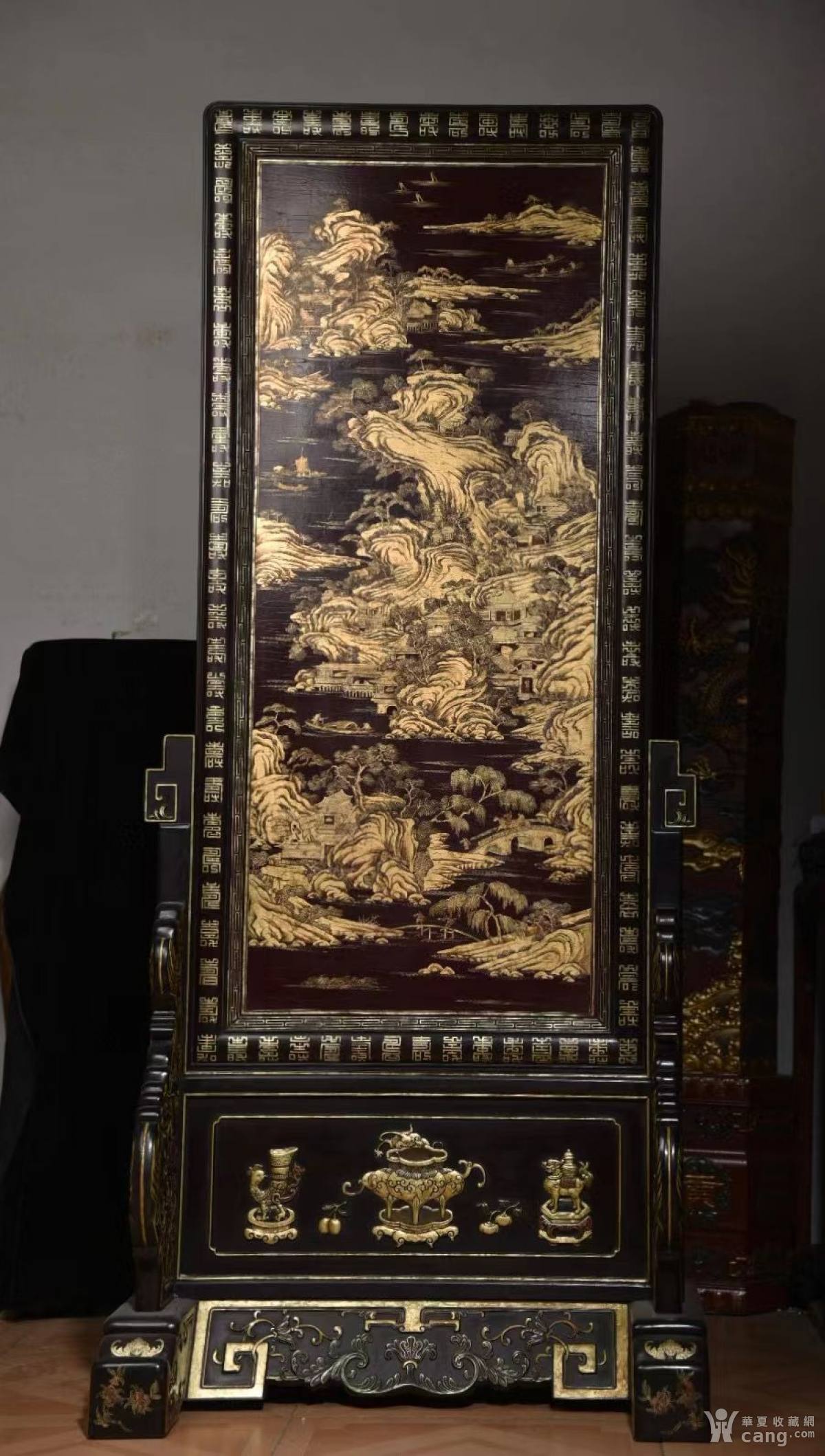 超大尺寸木胎描金漆器山居图福寿地屏 高187cm