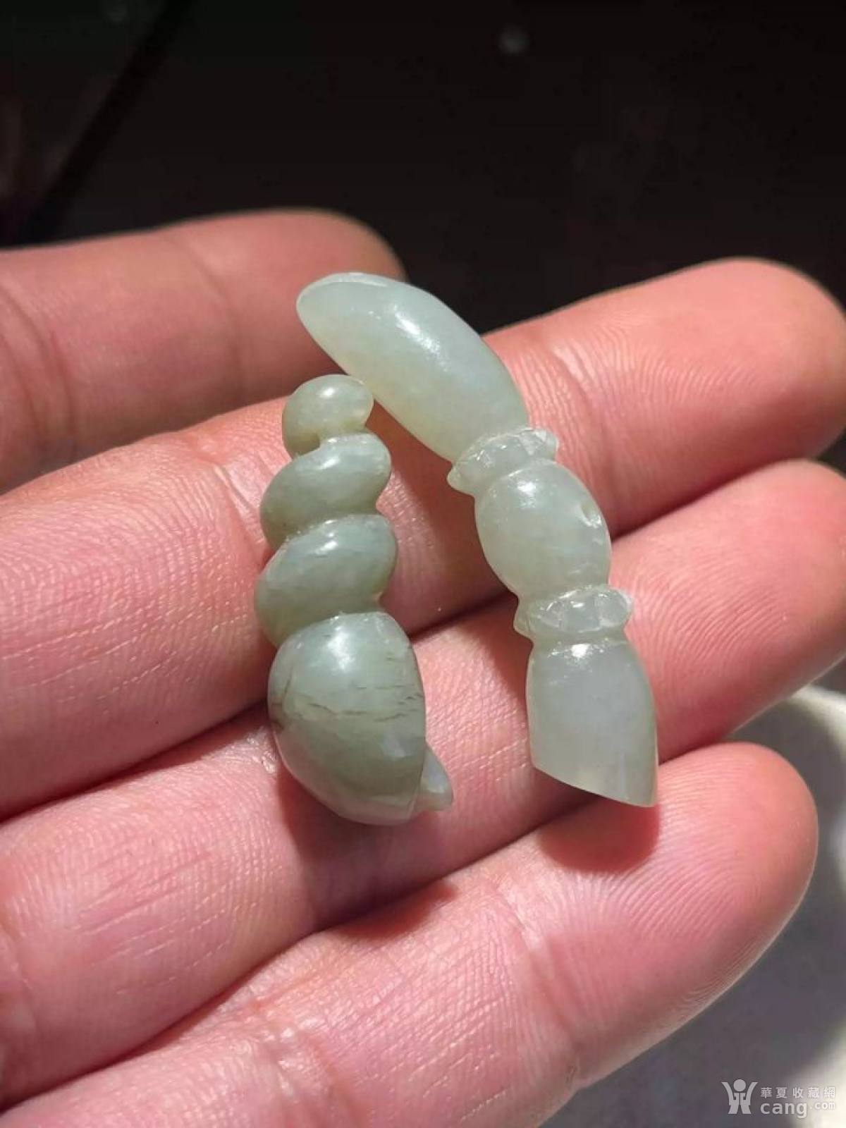清代老和田玉断镯子改的一个莲藕一个扭柱