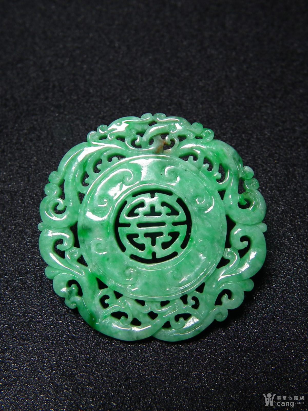 0109 老坑a货满绿翡翠双面工镂空双龙卷云纹团寿大圆佩