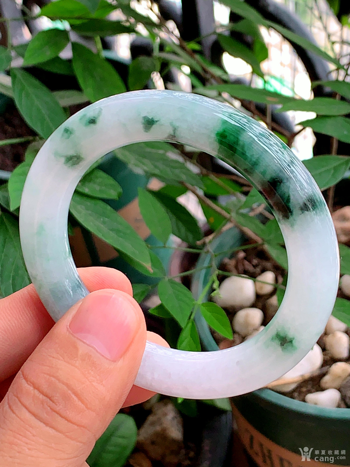 缅甸天然翡翠A货冰透水润飘花圆条手镯56圈口