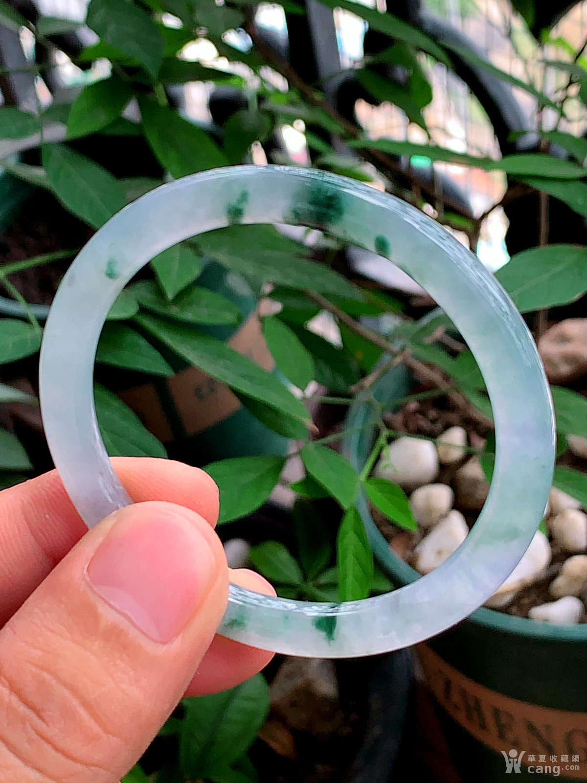 缅甸天然翡翠A货冰透水润飘花圆条手镯54.2圈口