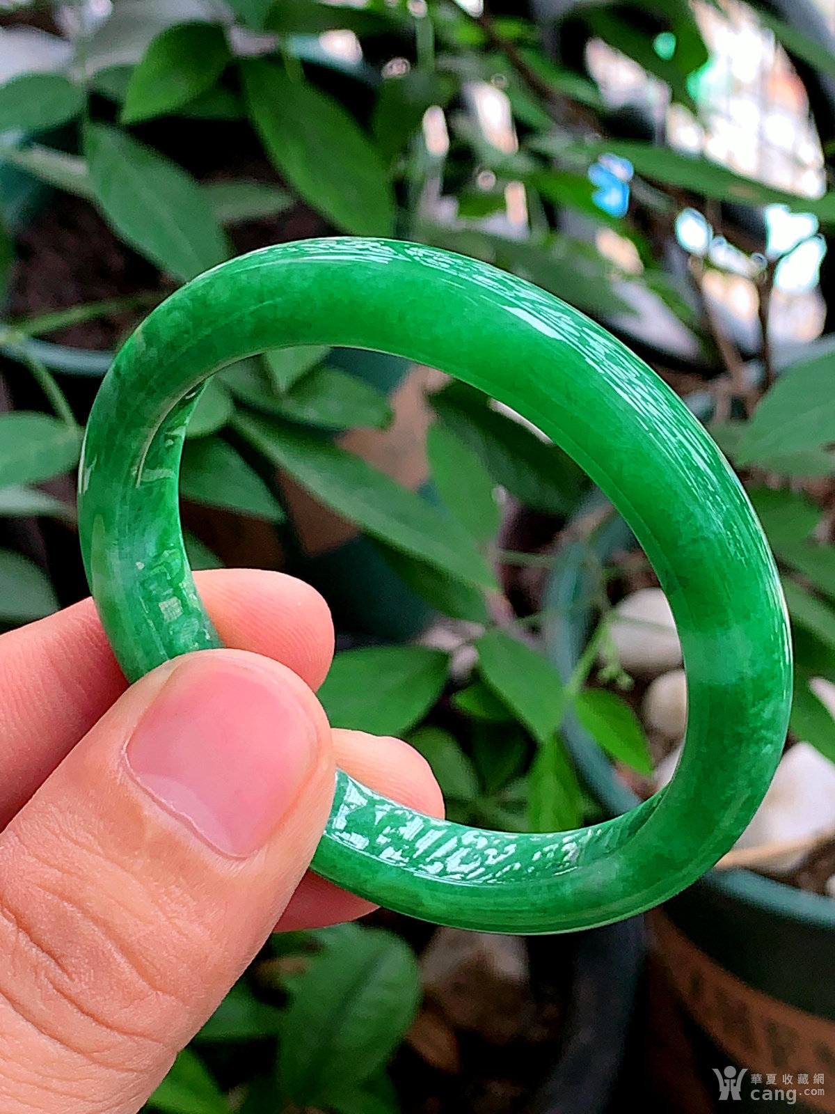 缅甸天然翡翠A货水润满绿宽边手镯52.1圈口